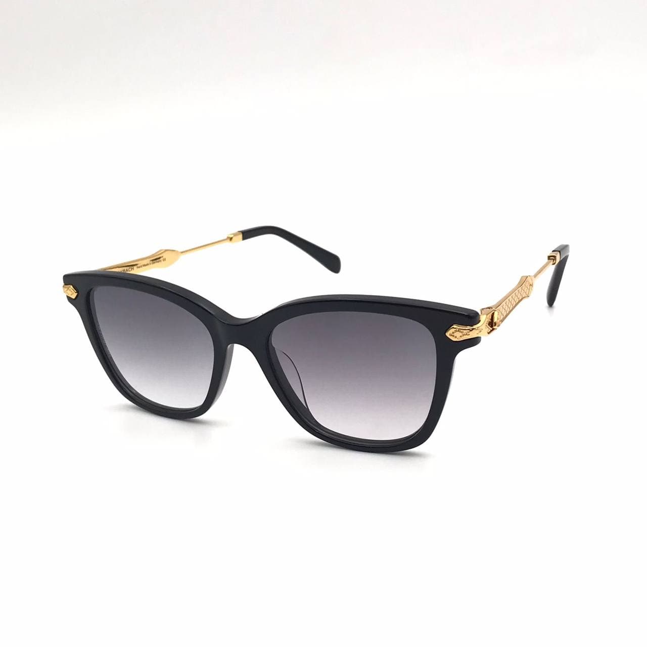Очки Maybach LUX-63574 – это стильный аксессуар для женщин, который сочетает в себе элегантность и функциональность. Модель выполнена в классической форме "кошачий глаз" с черной оправой и градиентными линзами. Золотистые элементы декора на дужках придают очкам роскошный вид.
