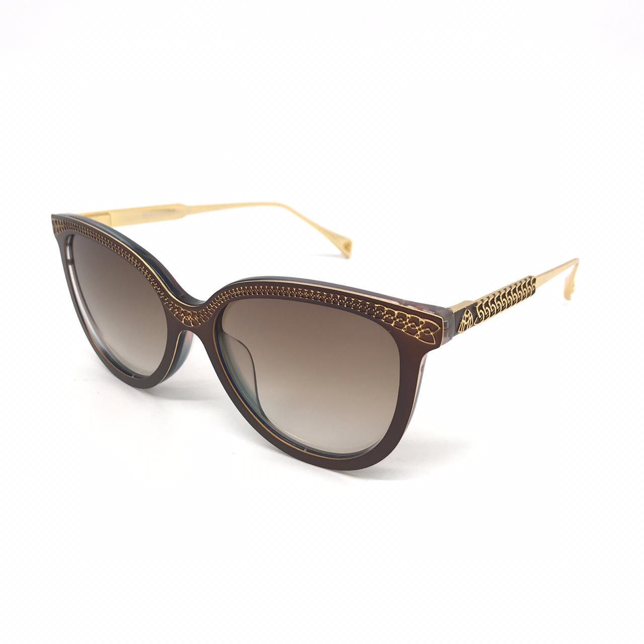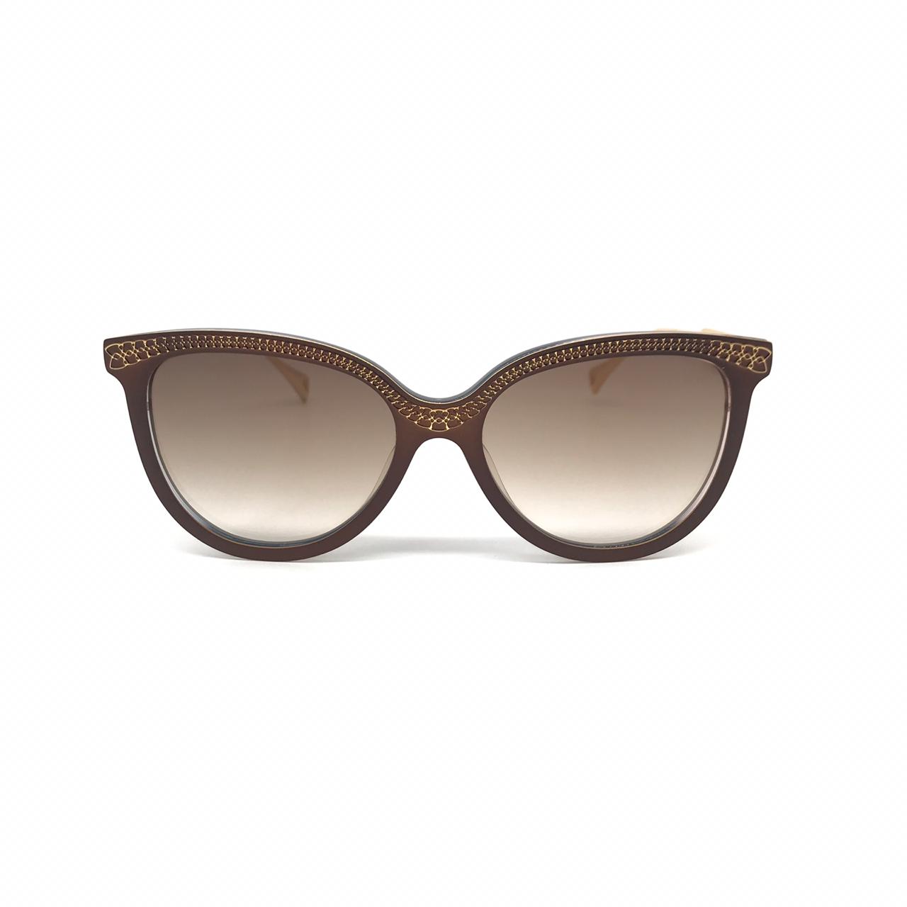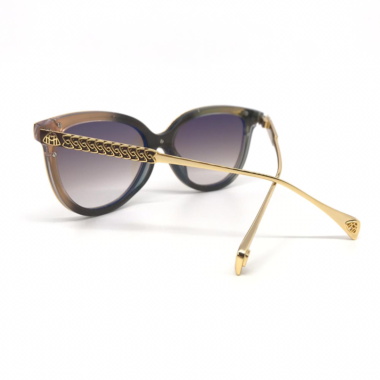 Элегантные женские солнцезащитные очки Maybahce LUX-17300 в стиле "кошачий глаз" сочетают в себе изысканный дизайн и роскошные детали. Оправа выполнена в коричневом оттенке, украшена золотистыми элементами, придающими очкам утонченный вид. Линзы с градиентным затемнением обеспечивают комфорт и защиту от солнечных лучей.
