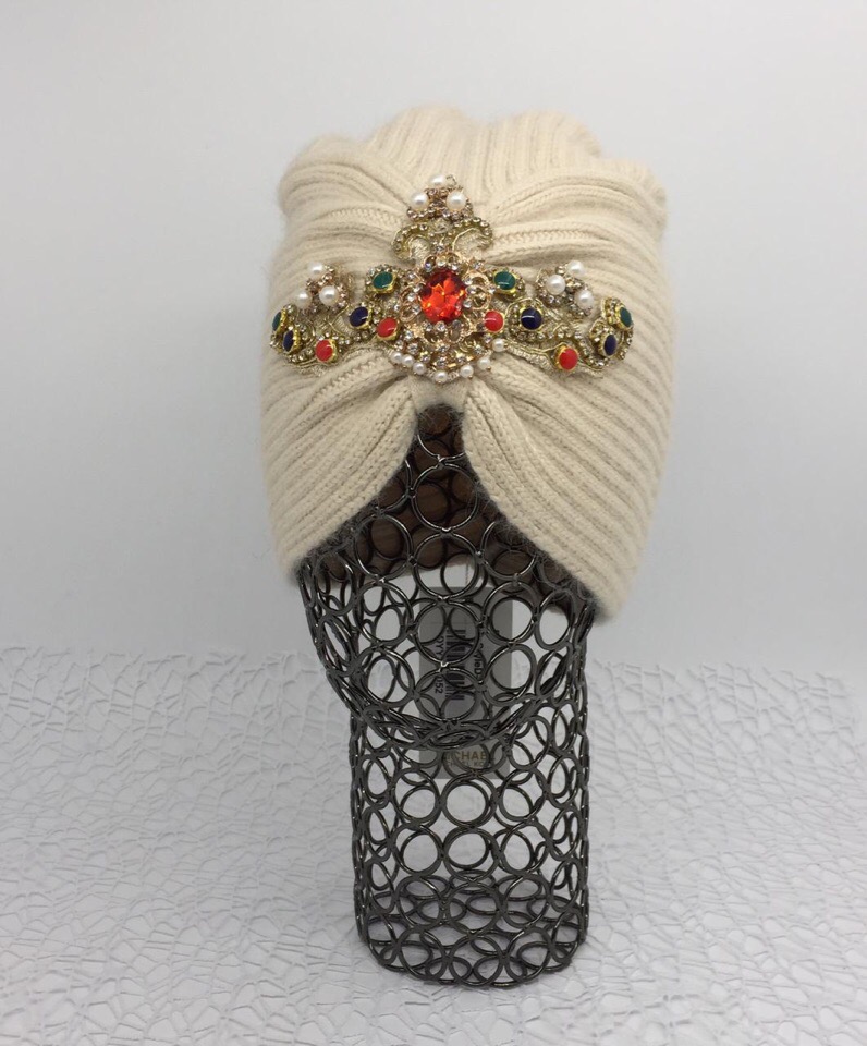 Шапка Michael Kors АКС-871 представляет собой стильный головной убор, выполненный в кремовом цвете. Ее дизайн дополнен изысканным декором в виде винтажной броши с разноцветными камнями и жемчугом, что придает изделию особый шарм и элегантность. Эта модель отлично подойдет для создания эффектного образа в холодное время года.