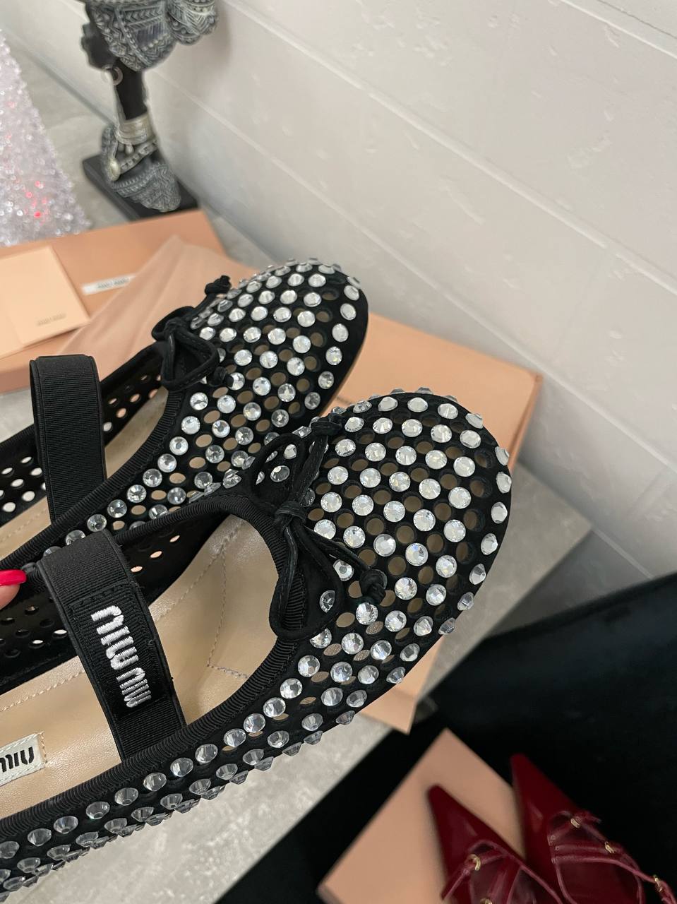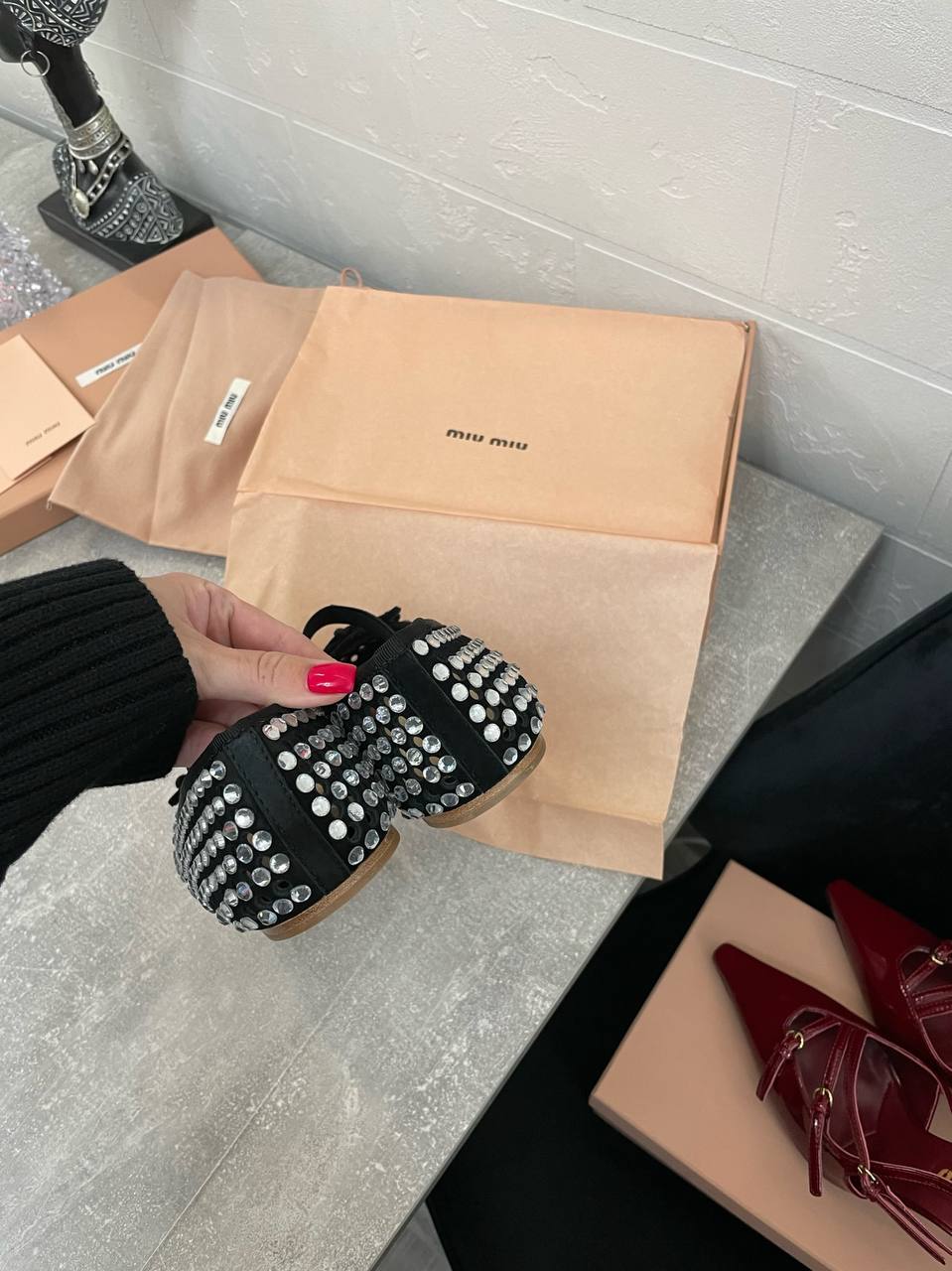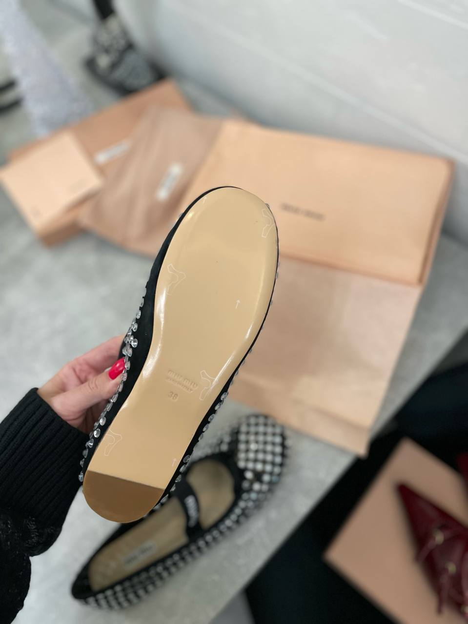 Балетки Miu Miu LUX-99742 – это изысканная обувь от известного бренда, представляющая собой элегантные балетки с необычным дизайном. Балетки выполнены в черном цвете и декорированы россыпью страз, создающих эффект мерцания. Эта модель сочетает в себе стиль и комфорт, идеально подходя для создания ярких образов.