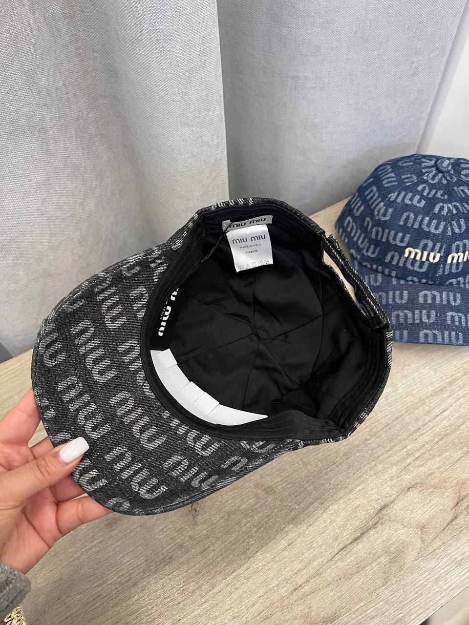 Бейсболка Miu Miu LUX-106591 представляет собой стильный аксессуар, который сочетает в себе элегантность и комфорт. Она выполнена в классическом стиле, с вышивкой логотипа бренда. Бейсболка темно-серого цвета, покрыта узором из повторяющихся надписей названия бренда, что придает ей уникальный вид.