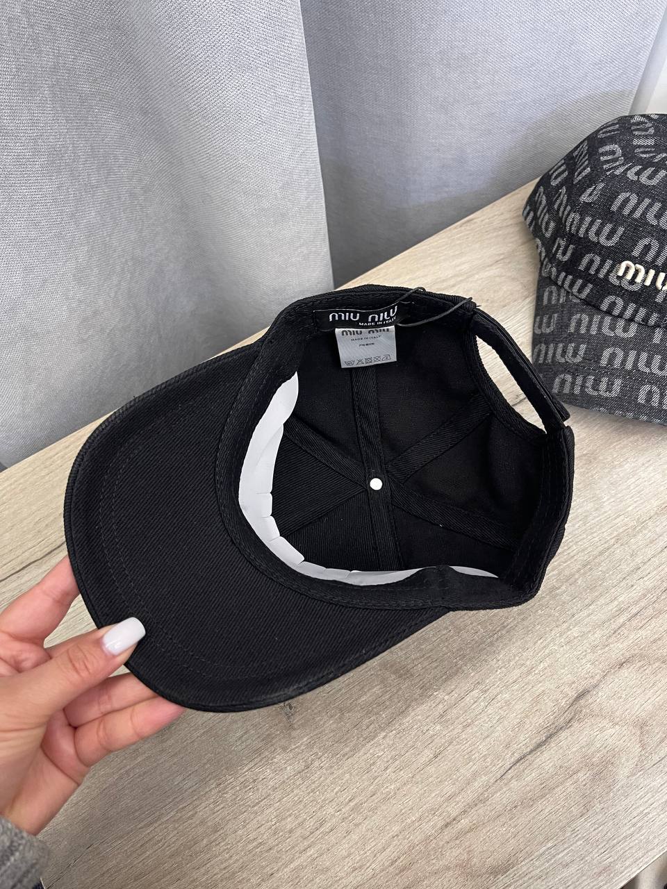 Бейсболка Miu Miu LUX-106588 – это стильный аксессуар, который сочетает в себе элегантность и спортивный шик. Бейсболка выполнена в классическом черном цвете, который делает ее универсальной для любого образа. На передней части бейсболки расположен контрастный логотип бренда.