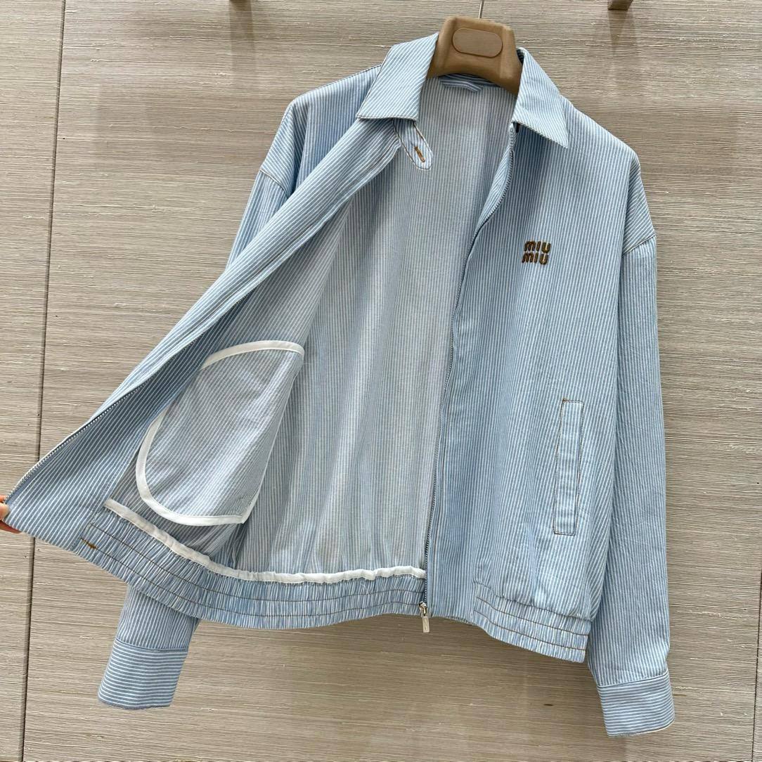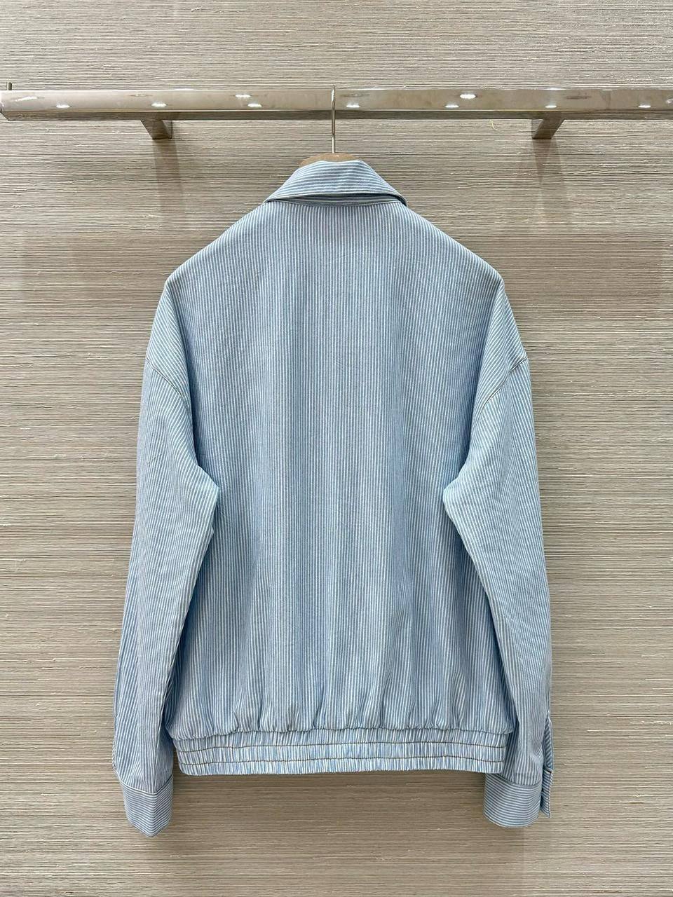 Бомбер Miu Miu LUX-119809 - это стильная куртка в полоску голубого цвета. Этот бомбер сочетает в себе комфорт и элегантность, идеально подходя для повседневного гардероба. Он станет отличным дополнением к любому образу, добавляя нотку изысканности.