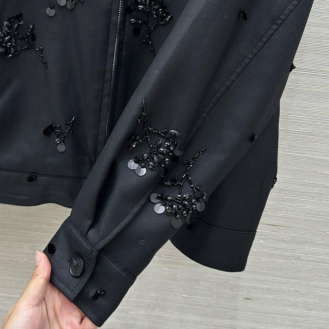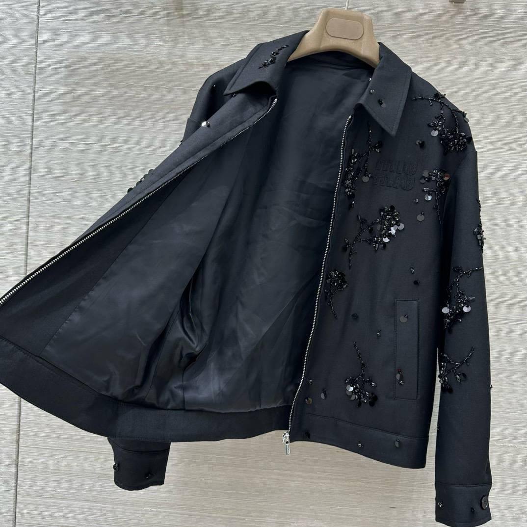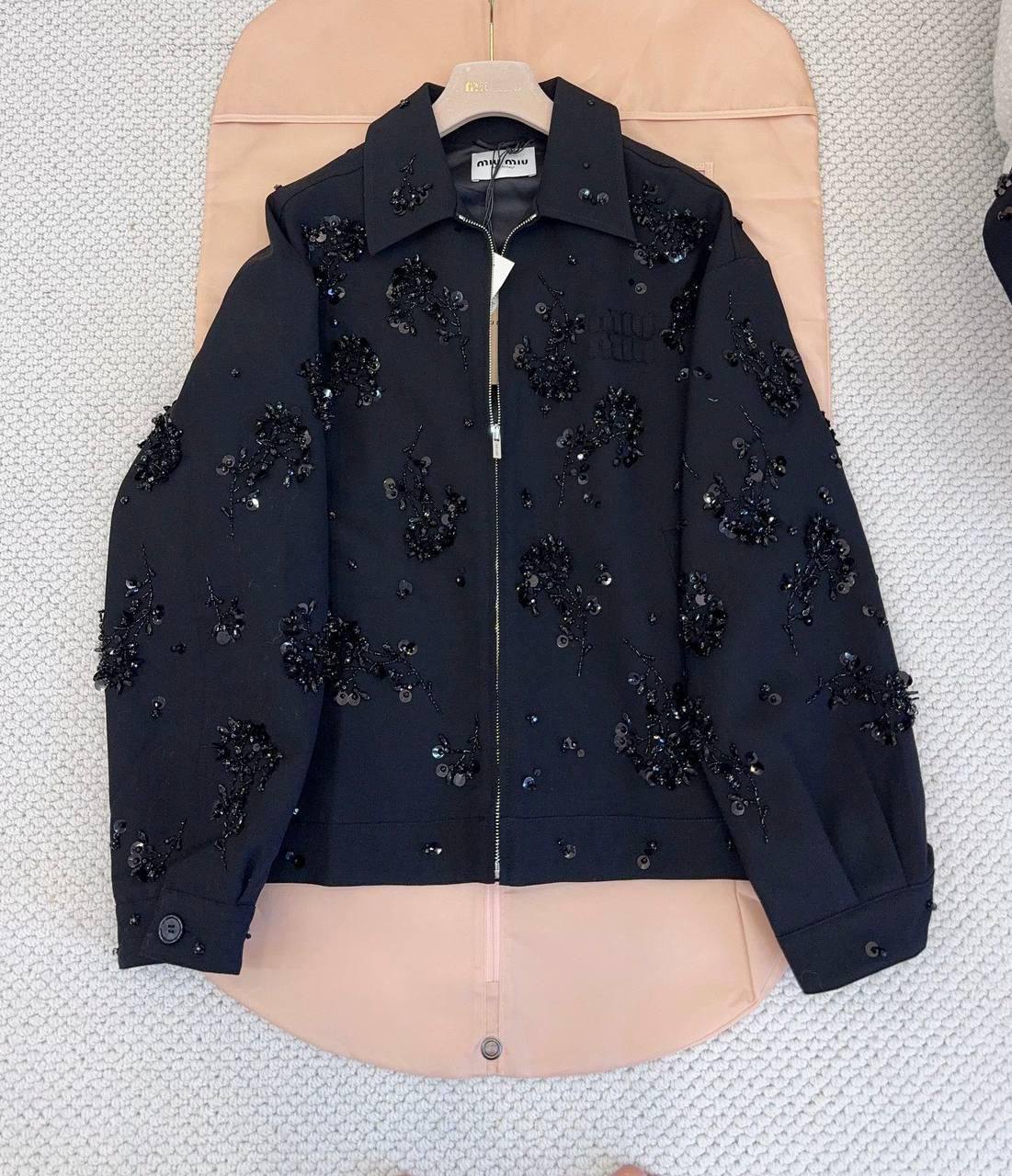 Бомбер Miu Miu - это стильная куртка, которая станет ярким акцентом в вашем гардеробе. Он сочетает в себе классический крой и роскошную отделку, что делает его идеальным выбором для особых случаев.