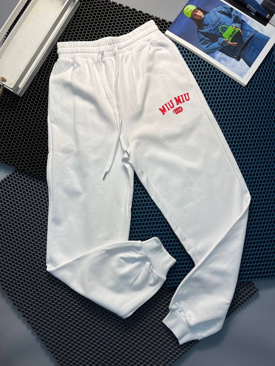 Брюки Miu Miu LUX-77222 – это стильные спортивные брюки белого цвета, выполненные в современном дизайне. На передней части брюк расположен логотип бренда Miu Miu красного цвета. Они идеально подойдут для создания повседневных образов в спортивном стиле.