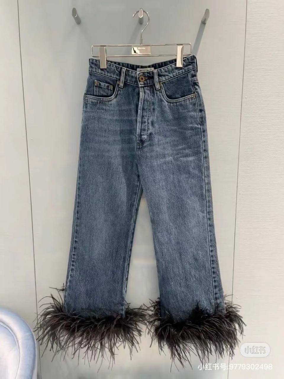 Джинсы Miu Miu LUX-100659 — это стильный предмет гардероба, который сочетает в себе классический джинсовый стиль и оригинальные детали. Модель выполнена в прямом крое, имеет классический синий цвет, а низ штанин декорирован пышными перьями. Эти джинсы подойдут для создания как повседневных, так и более нарядных образов.