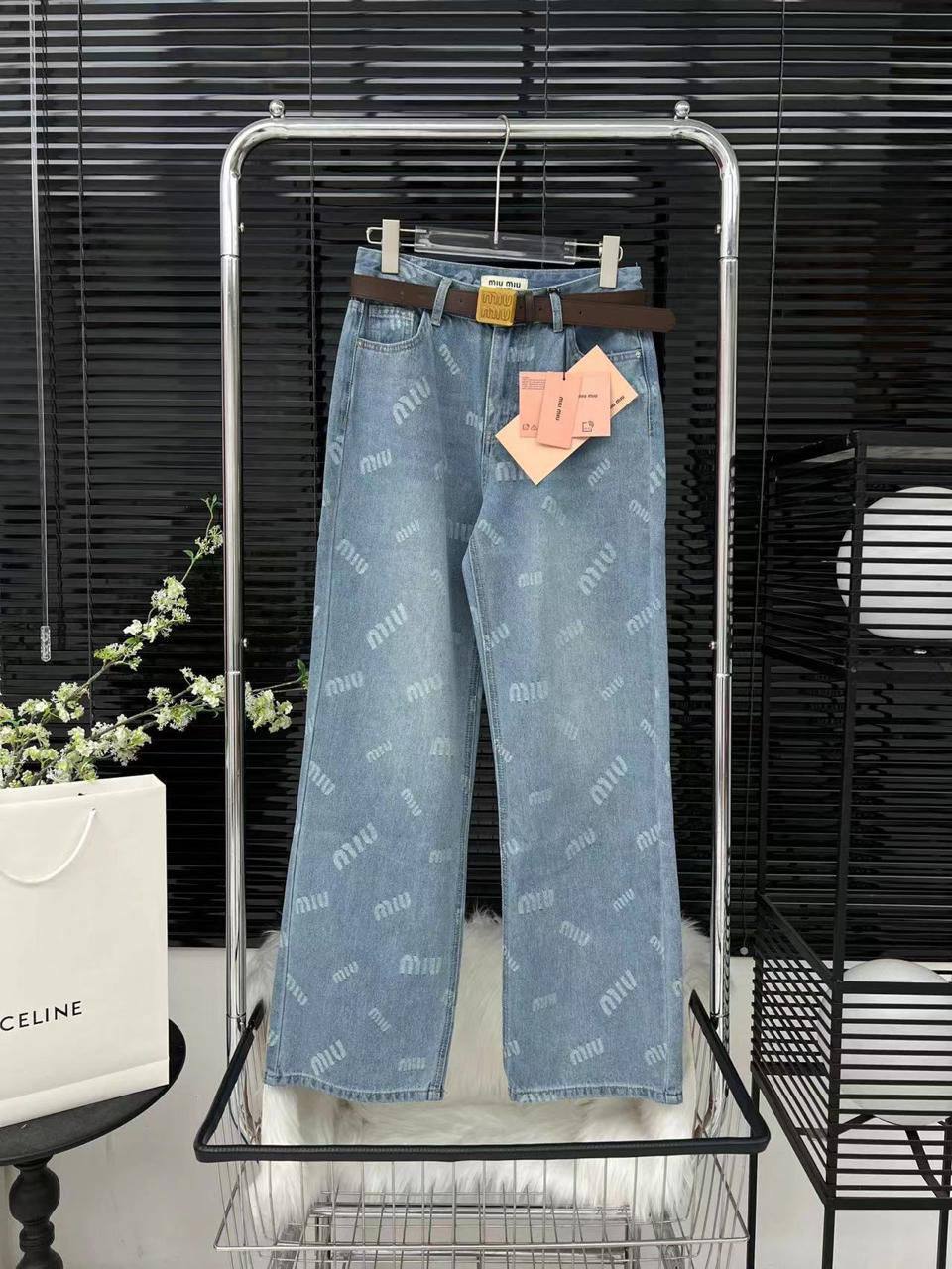 Джинсы Miu Miu LUX-104941 - это стильные джинсы прямого кроя, выполненные в светло-голубом цвете с нанесением логотипа бренда по всей поверхности. Джинсы имеют универсальный крой и прекрасно подойдут для создания повседневных образов.