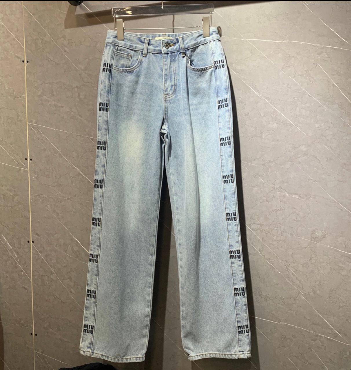 Джинсы Miu Miu, модель LUX-105536, это стильные джинсы прямого кроя, выполненные в классическом светло-голубом цвете с потертостями. Декорированы повторяющимся логотипом по бокам штанин. Подходят для создания как повседневных, так и более формальных образов.