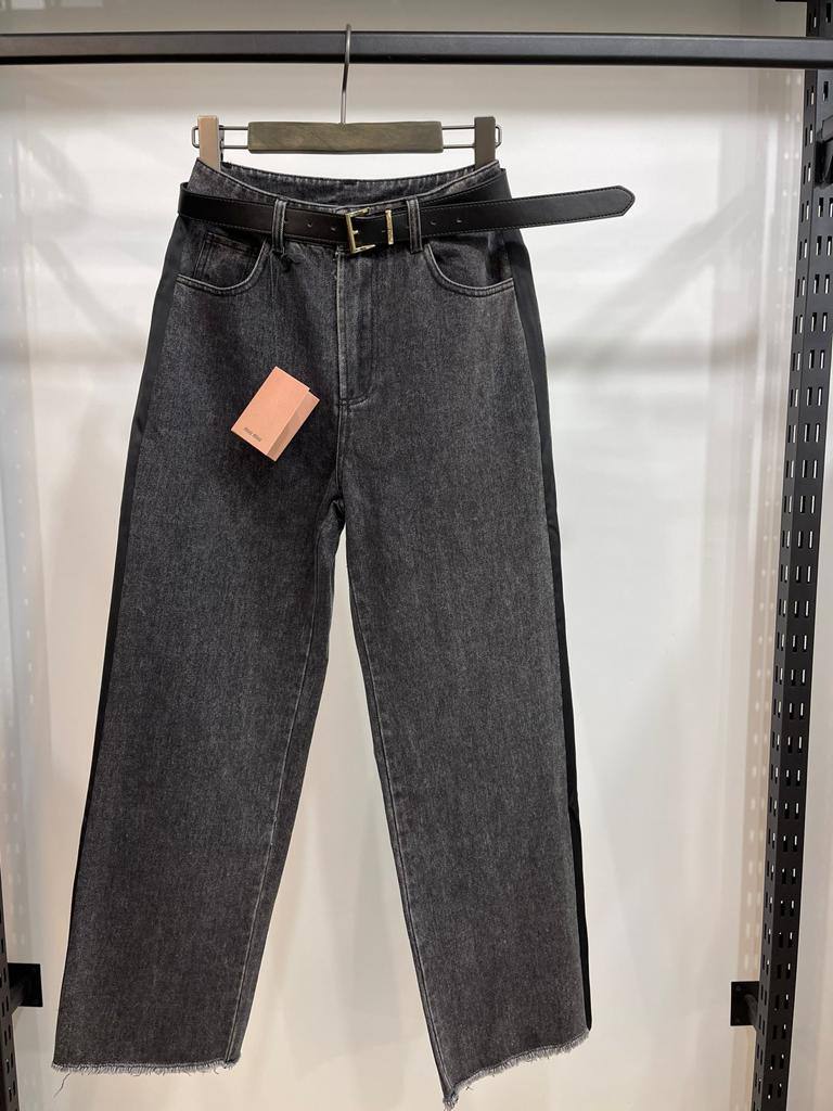 Джинсы Miu Miu LUX-82434 представляют собой модель в классическом стиле с прямым кроем. Джинсы имеют серый цвет с черными вставками по бокам, что добавляет контрастности и оригинальности. Идеально подходят для создания повседневных образов.