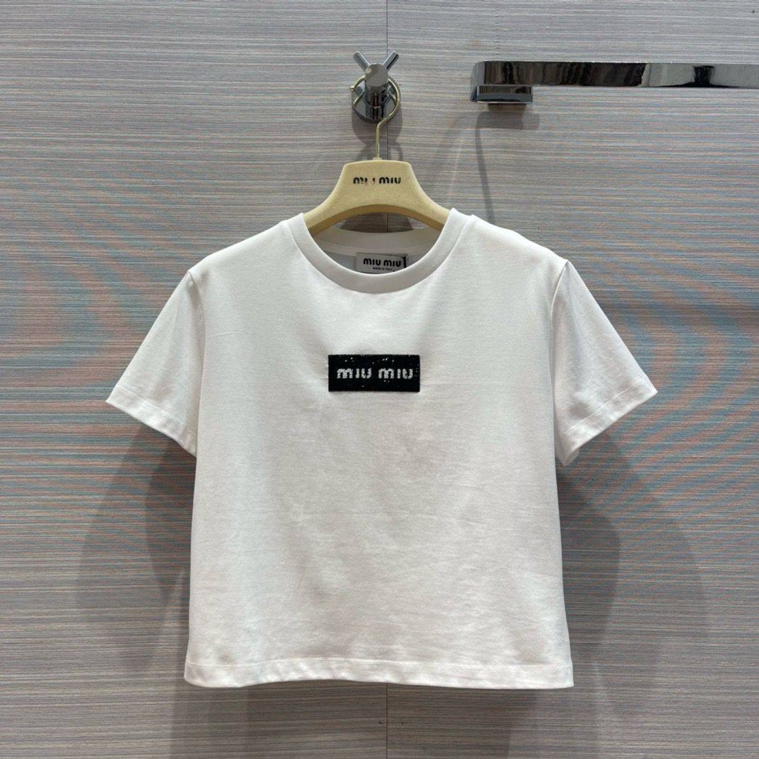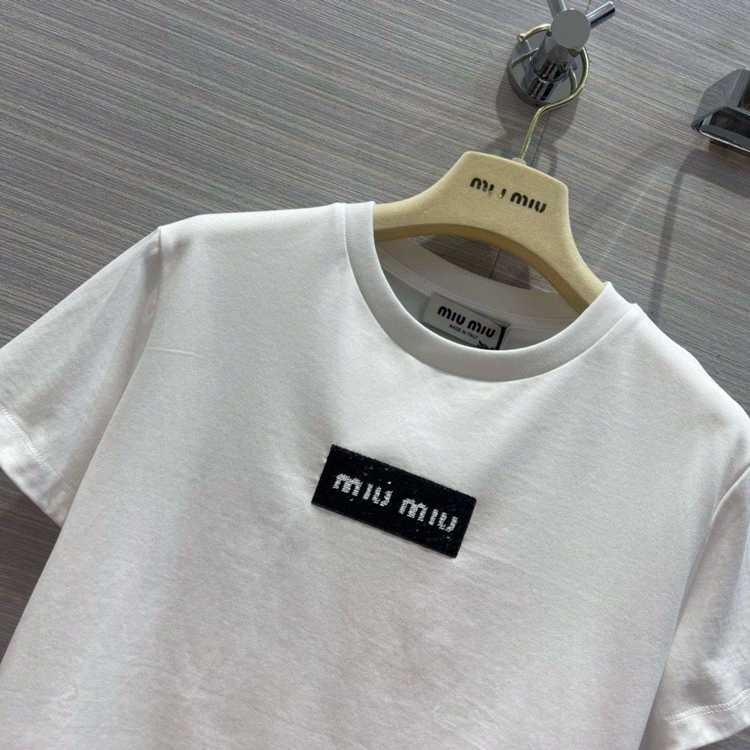 Футболка Miu Miu LUX-114316 - это стильная и минималистичная модель, которая идеально подойдет для создания повседневных образов. Белая футболка с круглым вырезом и короткими рукавами дополнена черным логотипом бренда в центре. Этот предмет гардероба подчеркнет индивидуальность и станет основой для множества модных комбинаций.