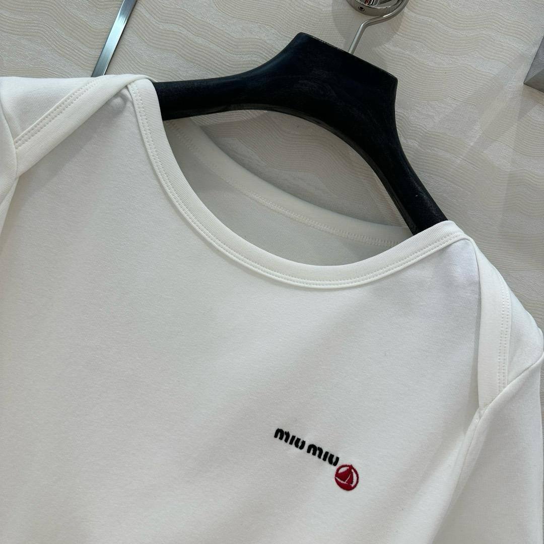 Футболка Miu Miu LUX-116396 представляет собой минималистичный и стильный предмет гардероба. Эта футболка выполнена в белом цвете, что делает её универсальной и подходящей для различных образов. Классический крой и лаконичный дизайн подчеркивают элегантность и позволяют легко сочетать футболку с другой одеждой.