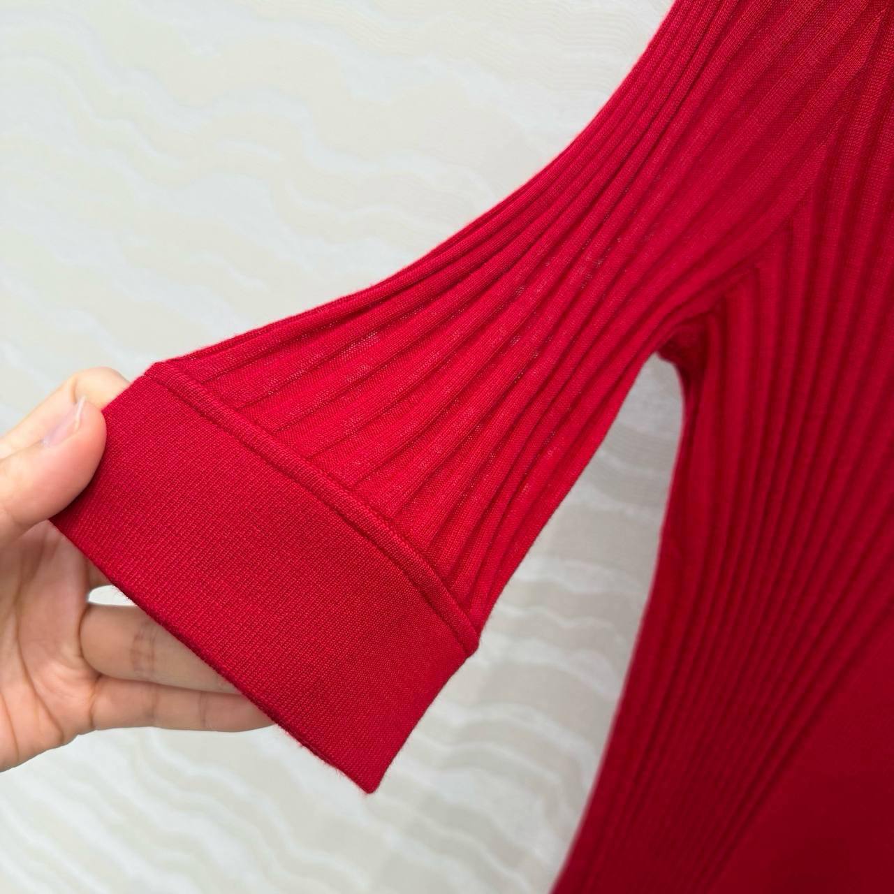 На фотографии представлена стильная женская футболка Miu Miu в облегающем силуэте, выполненная в насыщенном красном цвете. Ее дизайн отличается элегантностью и минимализмом.