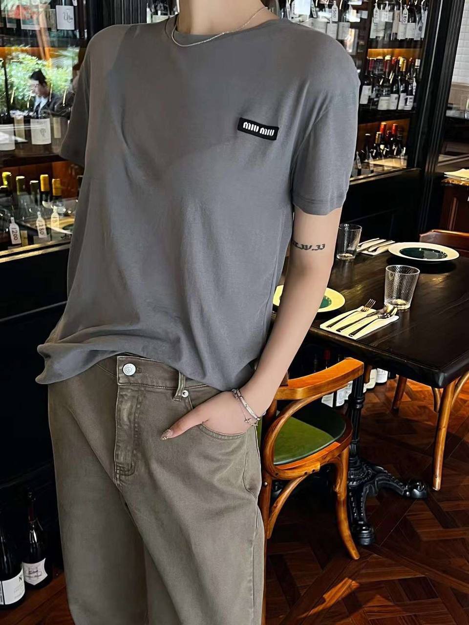 Футболка женская Miu Miu LUX-93655 - это стильная и лаконичная футболка от Miu Miu, выполненная в базовом сером цвете. Она имеет классический крой с короткими рукавами и круглым вырезом. Футболка декорирована небольшой нашивкой с логотипом бренда.