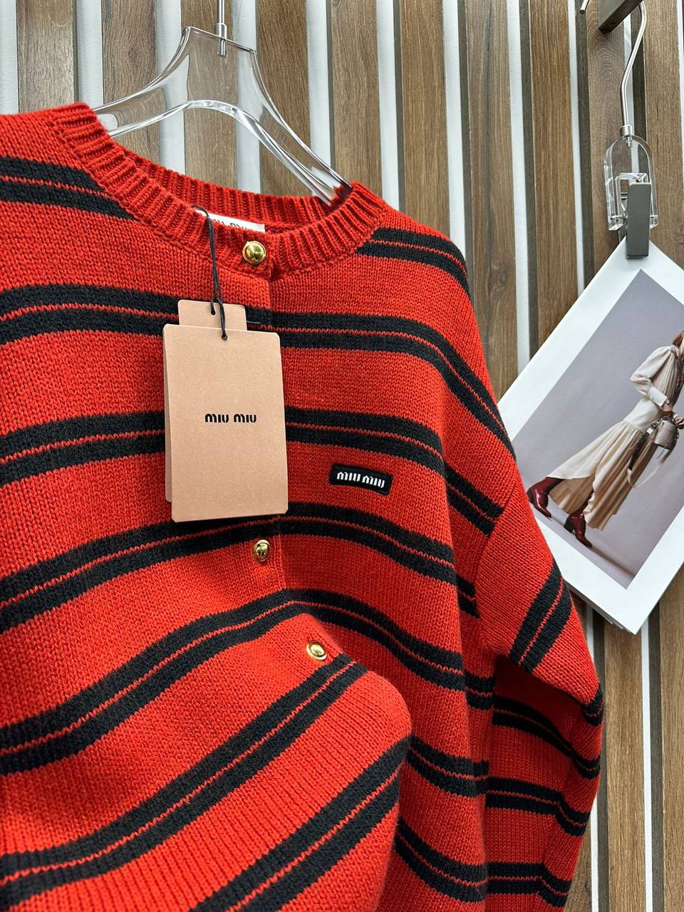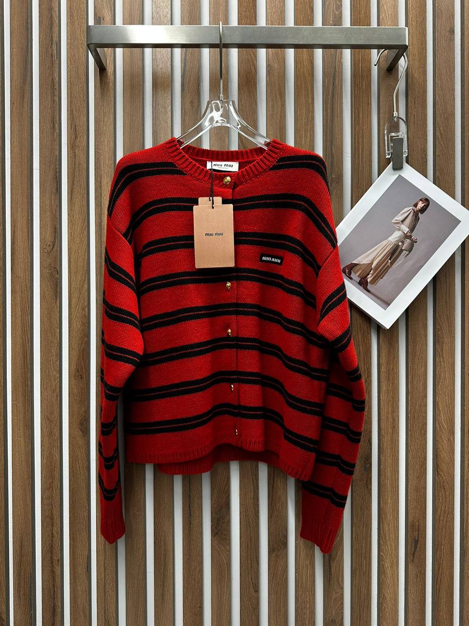 Кардиган Miu Miu LUX-112019 – это воплощение элегантности и комфорта. Кардиган выполнен в красном цвете с черными горизонтальными полосами, что создает стильный контраст. Он идеален для создания ярких образов в повседневной жизни.