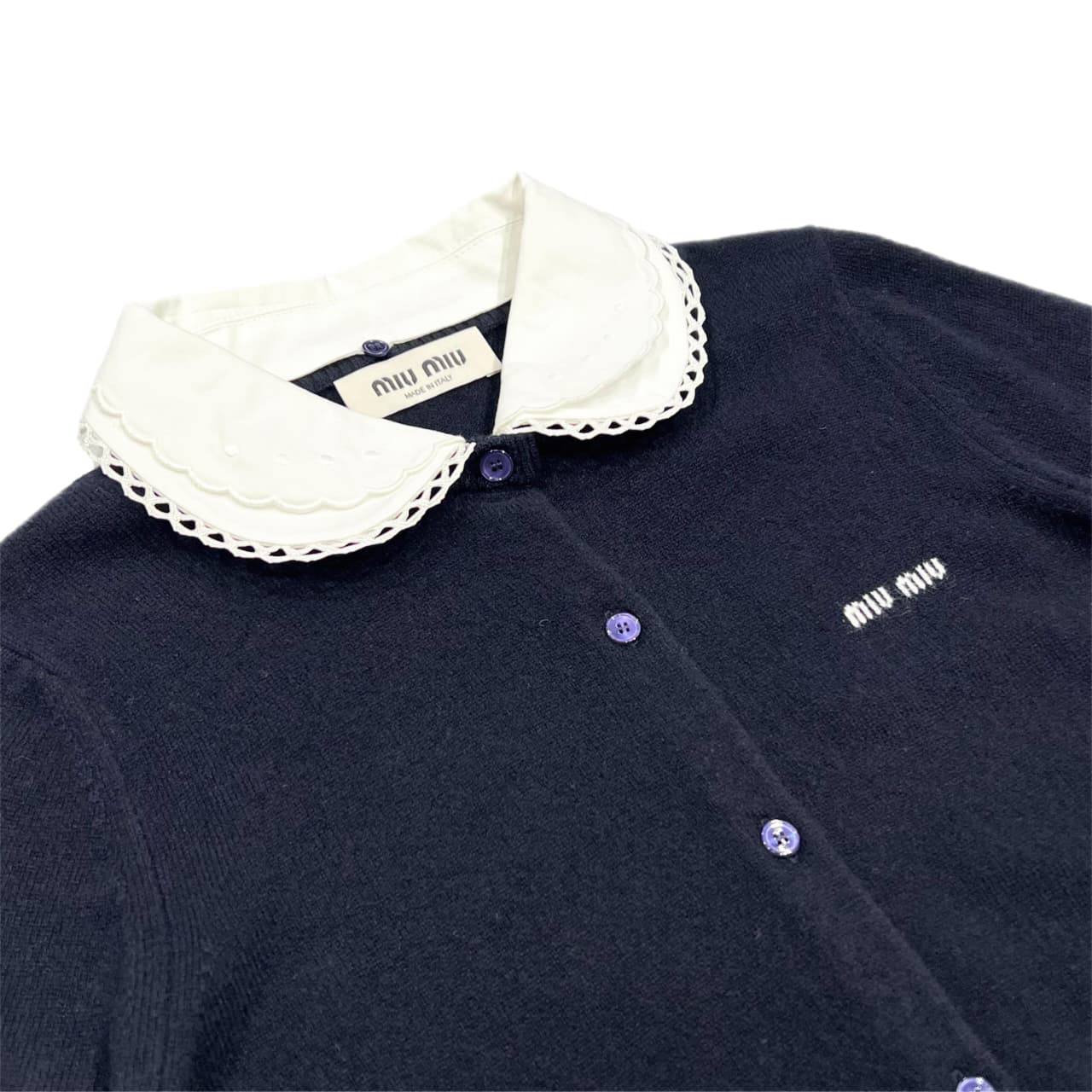 Этот кардиган от Miu Miu сочетает в себе классический стиль и элегантность. Он идеально подходит для создания утонченных образов в прохладную погоду.