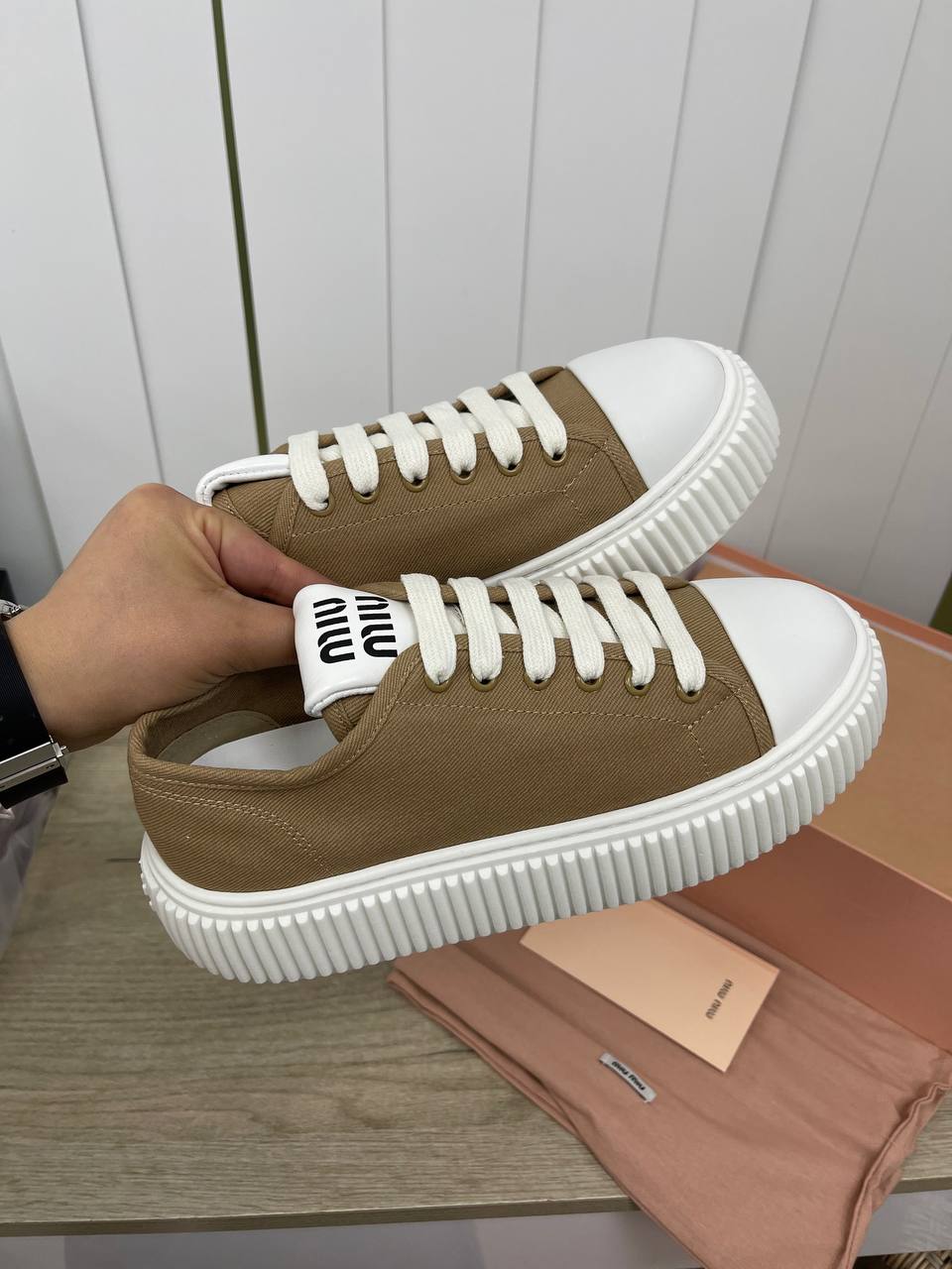 Кеды женские Miu Miu LUX-91603 – это стильные кеды от известного бренда. Основной цвет кед – коричневый, а носок и подошва белые. Такая цветовая гамма позволяет легко сочетать кеды с различными нарядами.