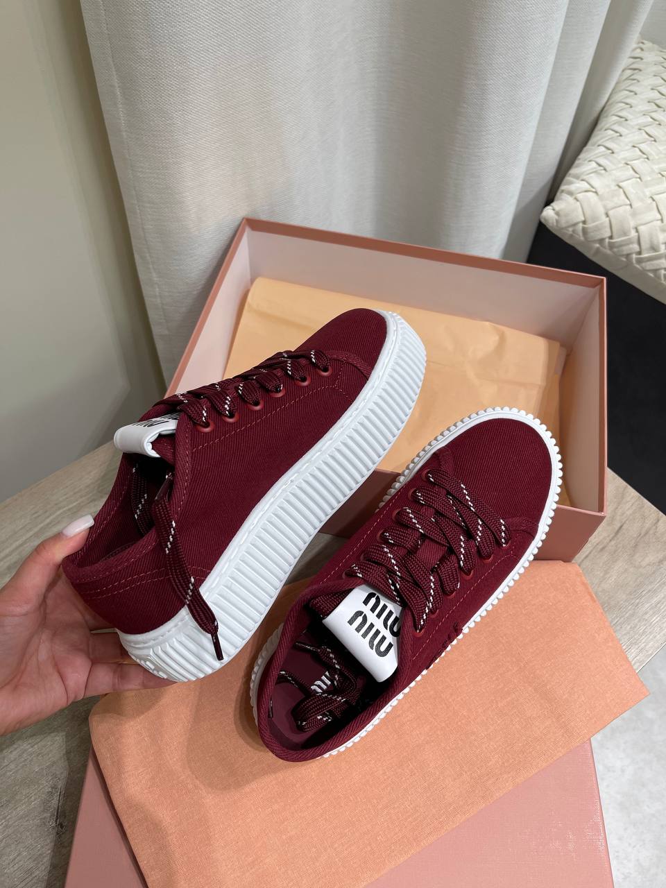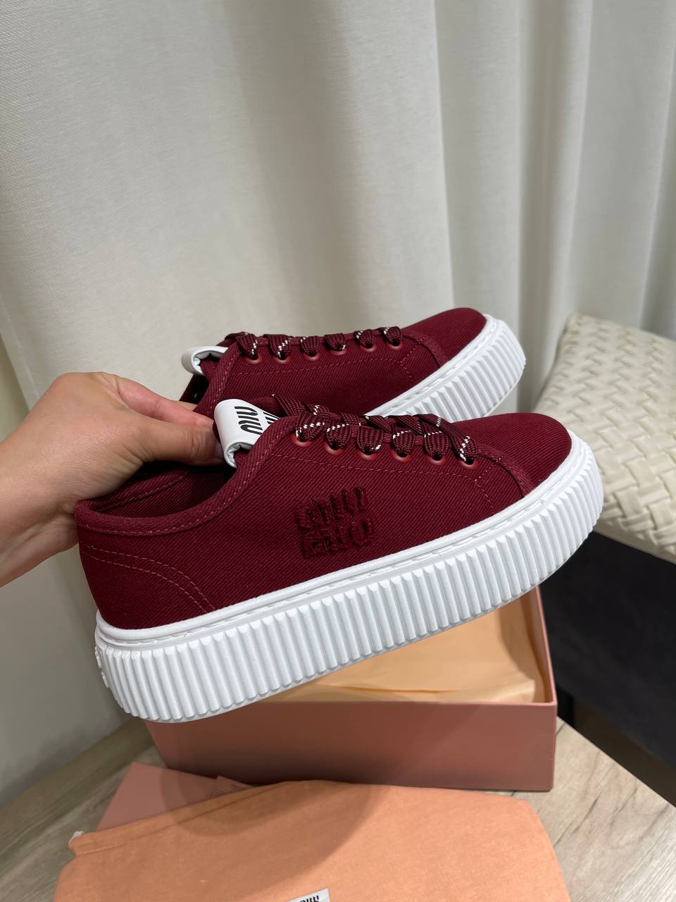 Кеды женские Miu Miu LUX-119659 – это стильная обувь от известного бренда, которая сочетает в себе комфорт и элегантность. Кеды выполнены в бордовом цвете с белой подошвой, что делает их универсальными для создания различных образов. Эта модель идеально подходит для повседневной носки, добавляя вашему стилю нотку изысканности.