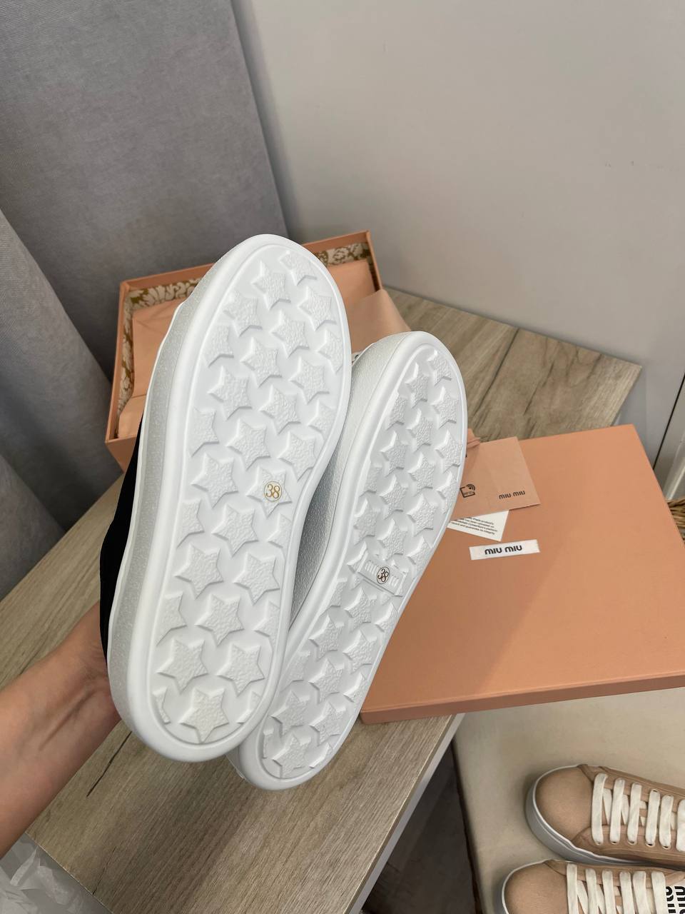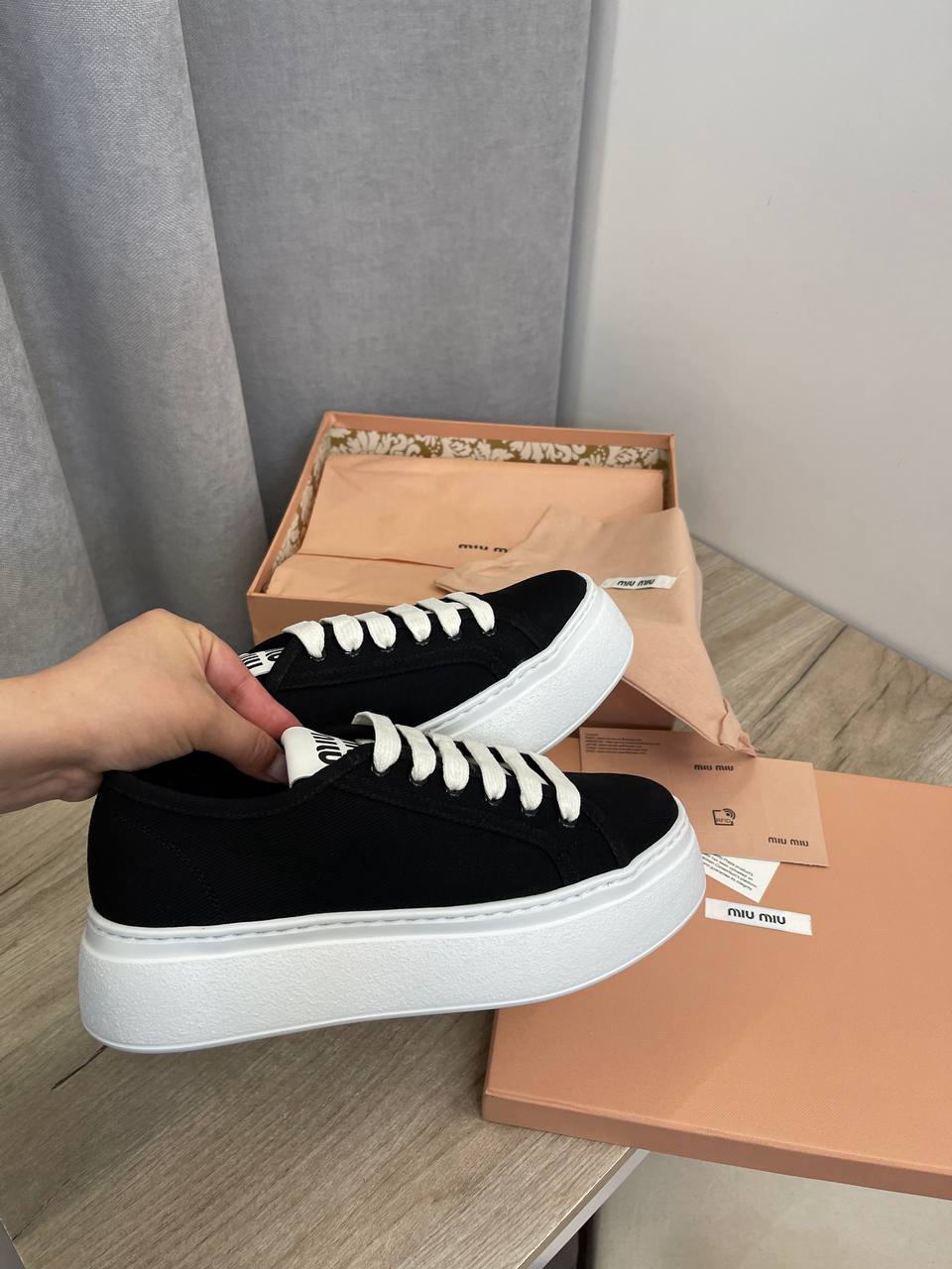 Кеды женские Miu Miu LUX-105826 представляют собой стильную и комфортную обувь для повседневной носки. Эти кеды выполнены в классическом черном цвете с белой подошвой, что делает их универсальными и легко сочетаемыми с различными нарядами. Они идеально подойдут для создания модных и удобных образов.