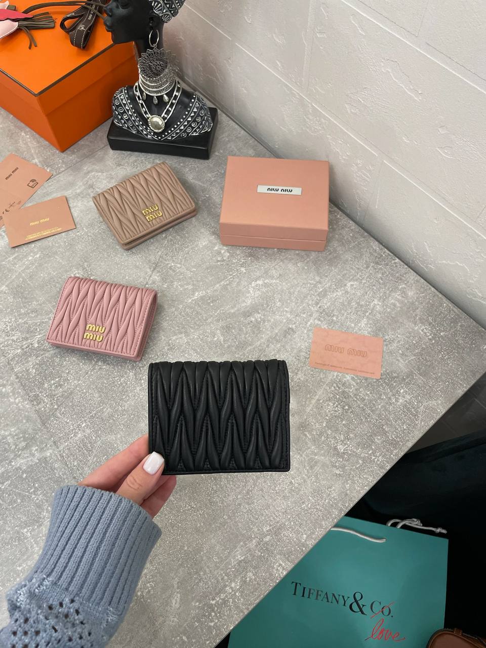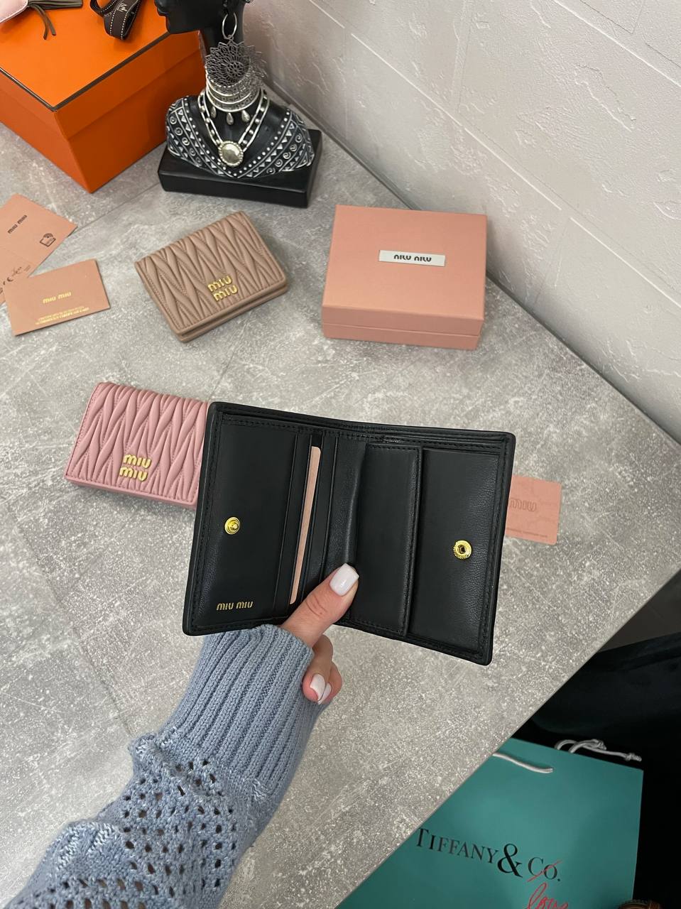 Кошелек Miu Miu LUX-102450 выполнен в элегантном стиле. Кошелек черного цвета с текстурой стеганой кожи и логотипом бренда. Идеальный аксессуар для хранения ваших карт, наличных и других мелочей.