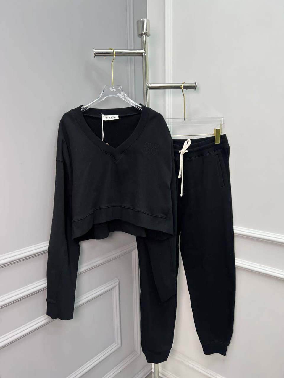Костюм спортивный Miu Miu LUX-101298 - это стильный спортивный костюм от известного бренда. Костюм выполнен в черном цвете, имеет гладкую текстуру и универсальный дизайн, подходящий для различных активностей и повседневной носки.