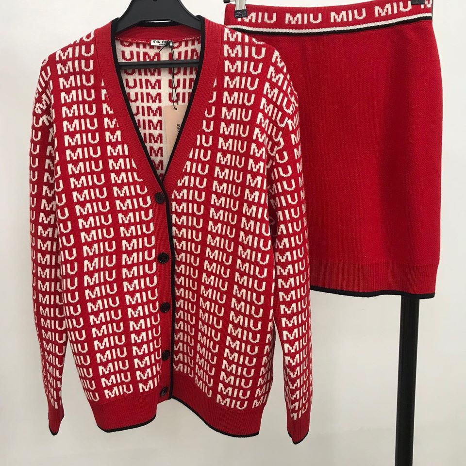 Этот женский костюм Miu Miu LUX-28807, состоящий из кардигана и юбки, выполнен в ярком красном цвете с контрастным белым принтом логотипа бренда. Комплект создает стильный и узнаваемый образ, идеально подходящий для создания модного кэжуал или более элегантного ансамбля. Костюм Miu Miu LUX-28807 выглядит как комфортный и эффектный выбор.