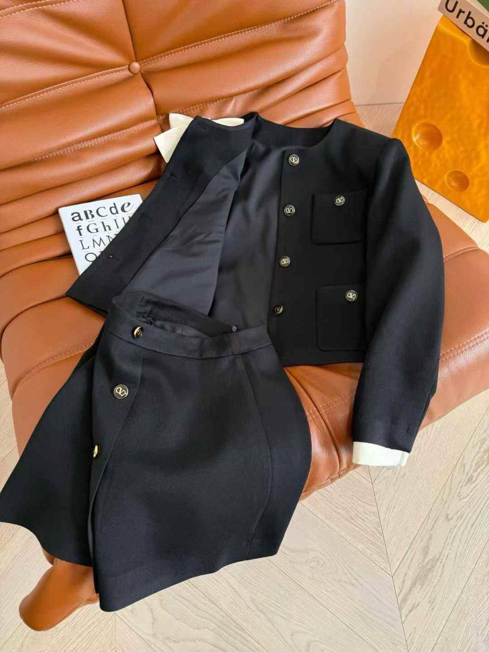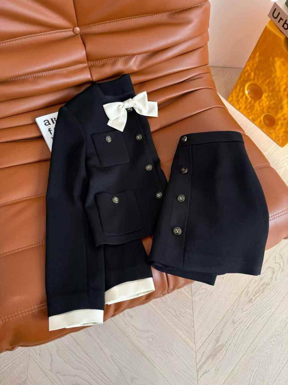 Костюм женский Miu Miu LUX-114004 - это элегантный комплект, включающий в себя жакет и юбку. Он выполнен в классическом стиле, идеально подходящем для создания утонченных образов. Чёрный цвет костюма придает ему универсальность и делает его подходящим для различных мероприятий.
