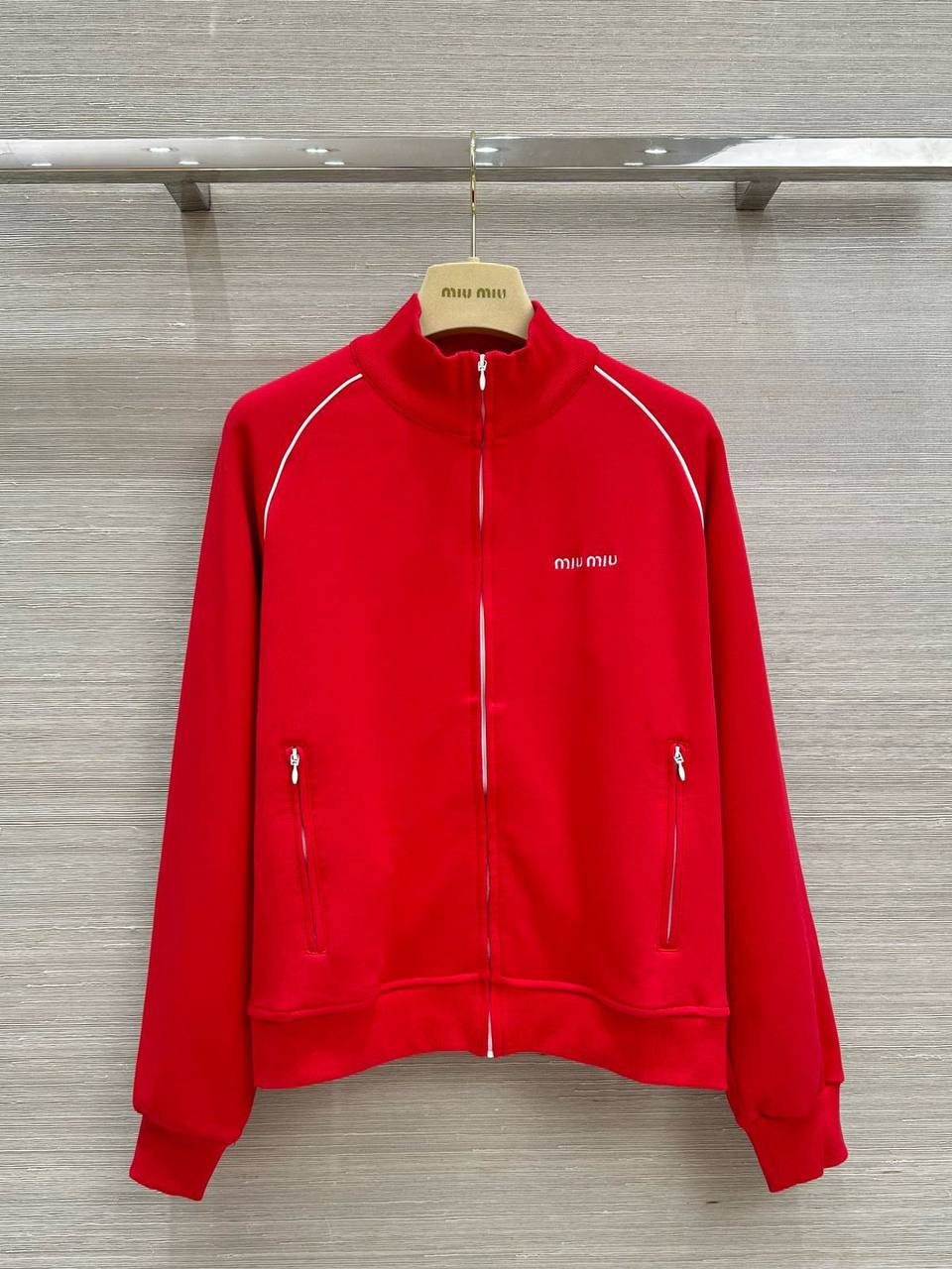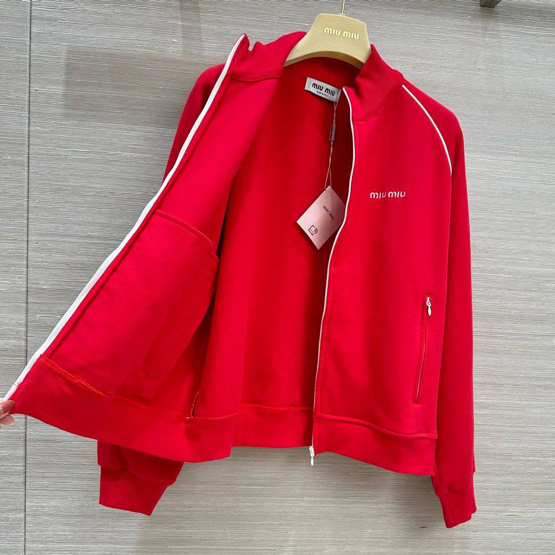 Костюм женский Miu Miu LUX-114277 — это стильный спортивный костюм от известного бренда. Комплект выполнен в ярком красном цвете и включает в себя олимпийку и юбку. Идеально подходит для создания модных и комфортных образов для повседневной носки или занятий спортом.