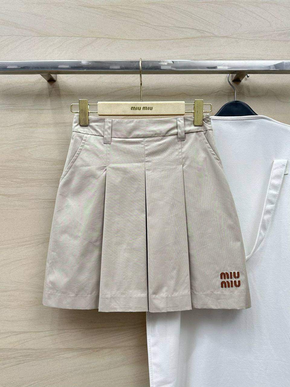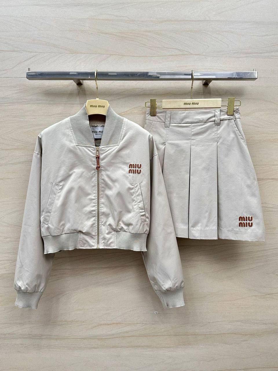 Костюм женский Miu Miu LUX-115110 – это стильный комплект, представляющий собой современное прочтение классического спортивного стиля. В комплект входит куртка-бомбер и юбка-шорты. Комплект выполнен в нежном бежевом оттенке, что придает ему элегантность и универсальность.