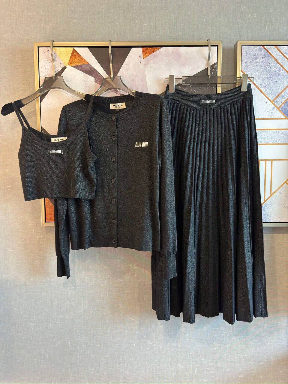 Костюм женский Miu Miu LUX-102661 – это элегантный ансамбль, воплощающий современный стиль. Комплект включает в себя кардиган, топ и юбку. Темно-серый цвет с текстурой добавляет роскоши и делает костюм подходящим для различных случаев.
