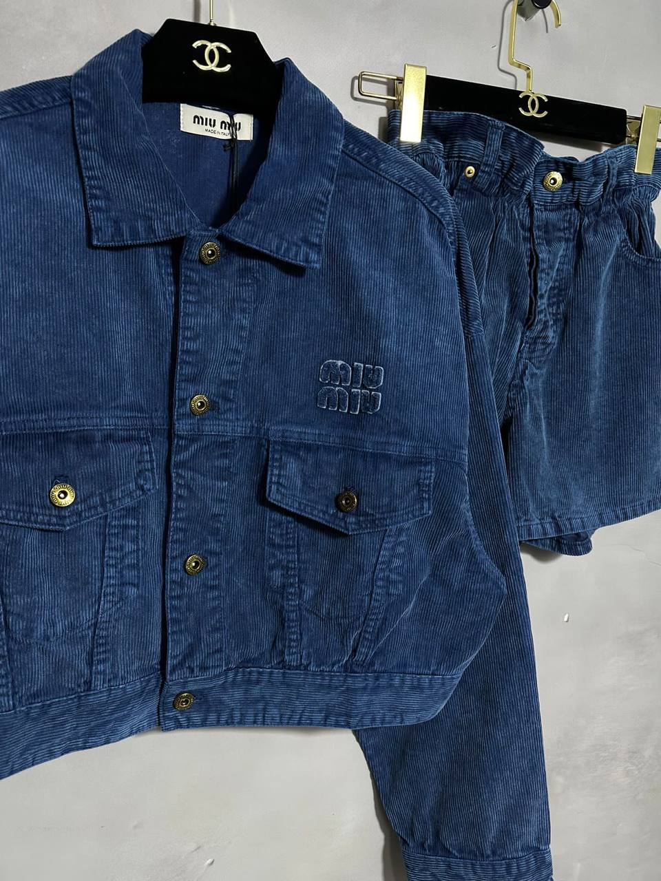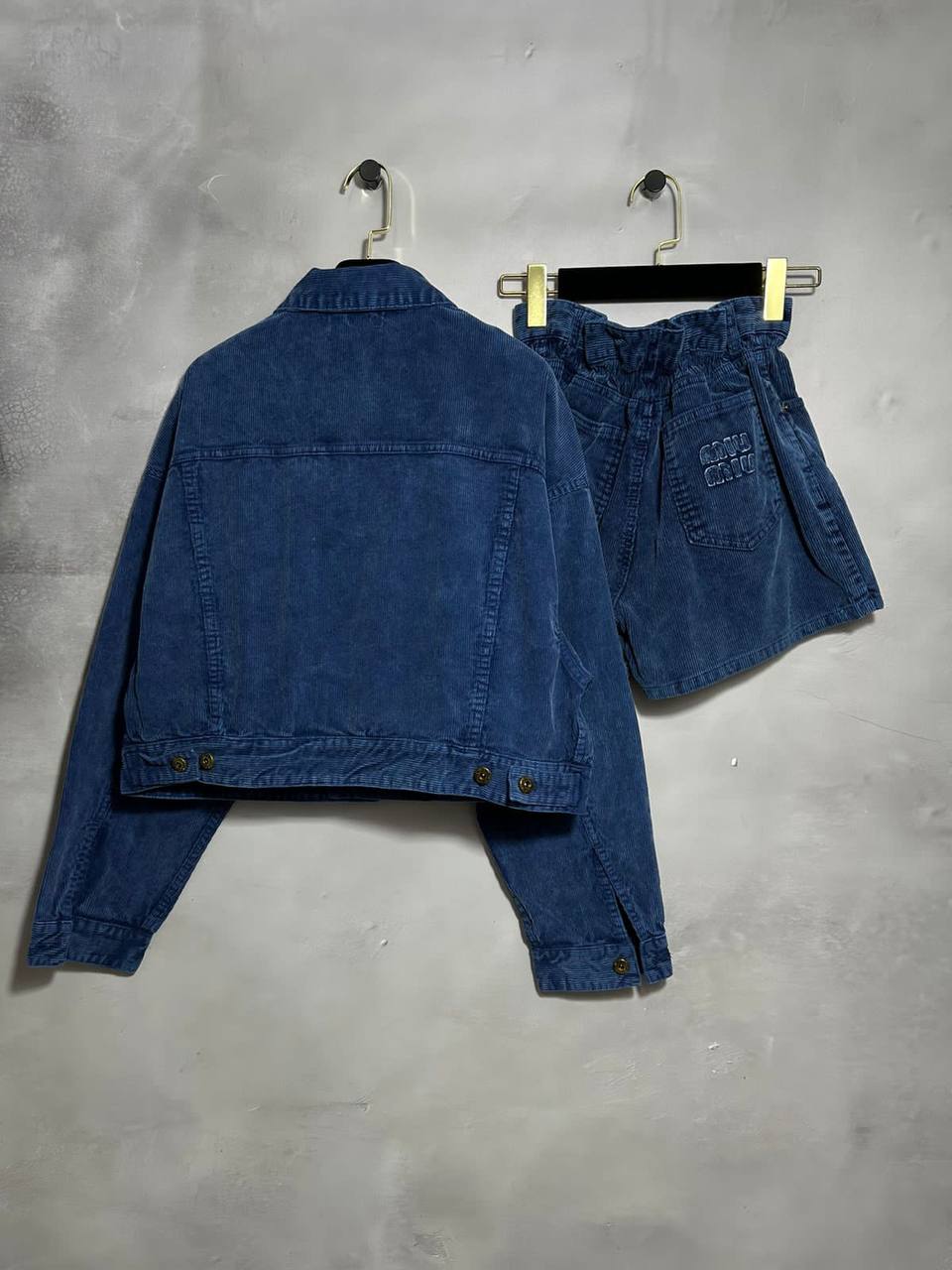 Костюм женский Miu Miu LUX-101150 представляет собой стильный комплект, состоящий из куртки и шорт. Этот костюм выполнен в современном стиле, имеет синий цвет и вельветовую текстуру. Идеально подходит для создания комфортного и модного образа.