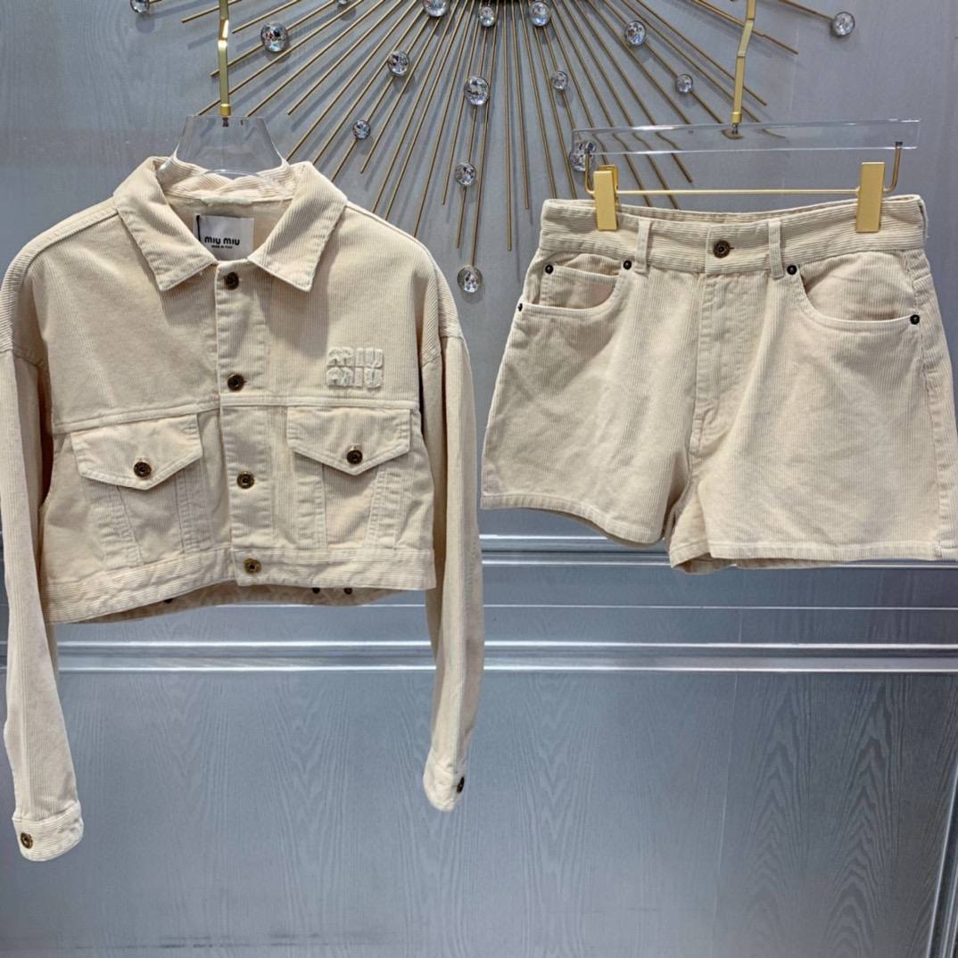 Костюм женский Miu Miu LUX-106045 – это стильный комплект в кэжуал стиле, который состоит из куртки и шорт. Костюм выполнен в бежевом цвете, придающем ему мягкость и универсальность. Текстура ткани создает интересный визуальный эффект.