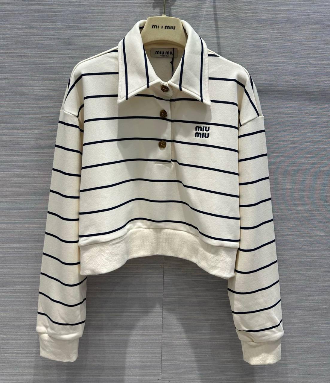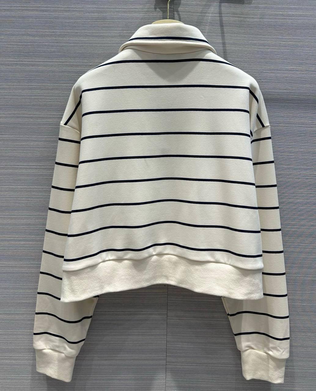 Костюм женский Miu Miu LUX-107076 — это стильный комплект в спортивном стиле. Он выполнен в кремовом цвете с черными горизонтальными полосками. Идеально подойдет для повседневной носки, создания расслабленных образов.