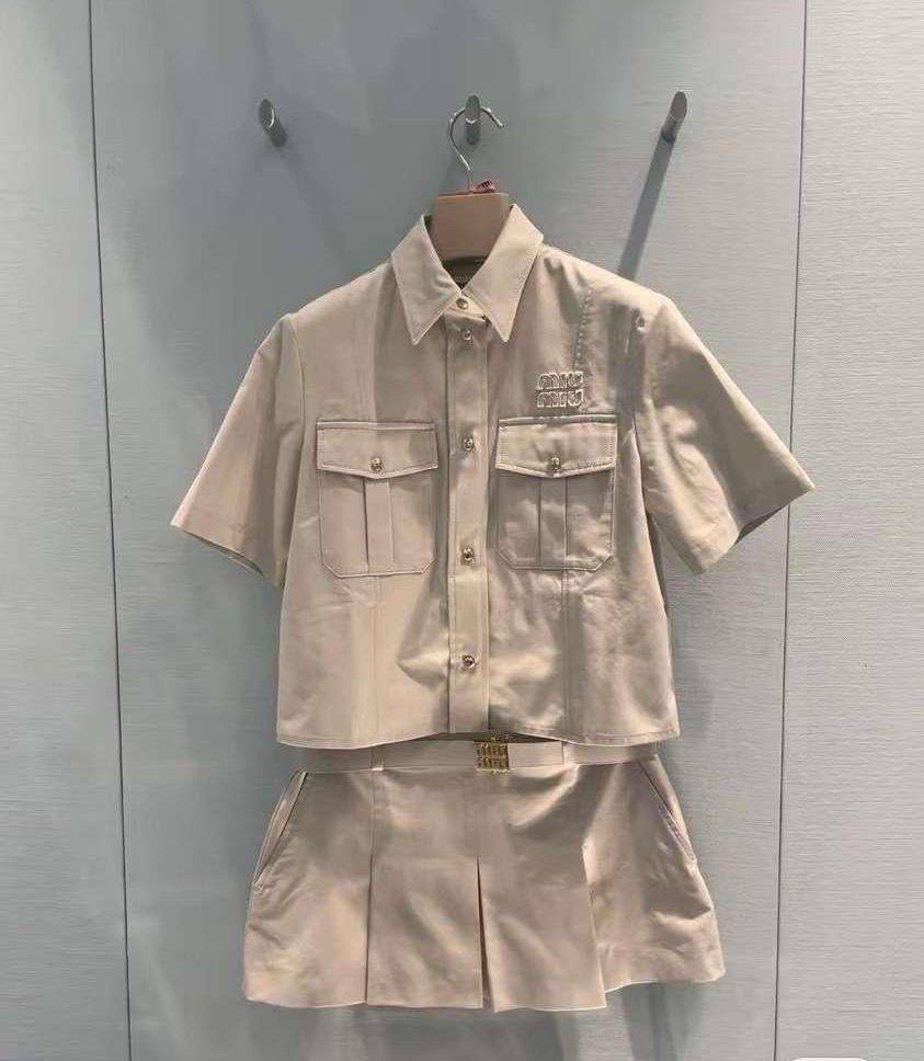 Костюм женский Miu Miu LUX-107547 — это стильный комплект в стиле casual, который идеально подходит для создания элегантного образа. Костюм состоит из рубашки с короткими рукавами и юбки. Комплект выполнен в нейтральном оттенке, что позволяет легко сочетать его с различными аксессуарами.