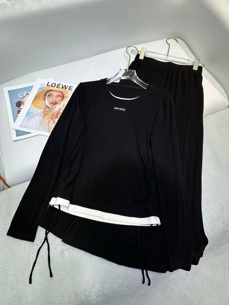Костюм женский Miu Miu LUX-110497 – это стильный комплект для повседневной носки. Он выполнен в черном цвете, что делает его универсальным для создания различных образов. Костюм имеет свободный крой, обеспечивая комфорт и свободу движений.