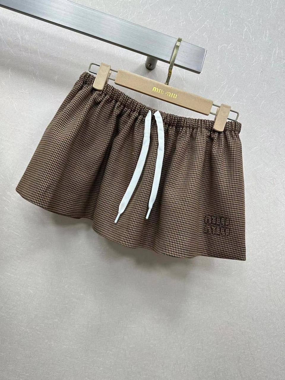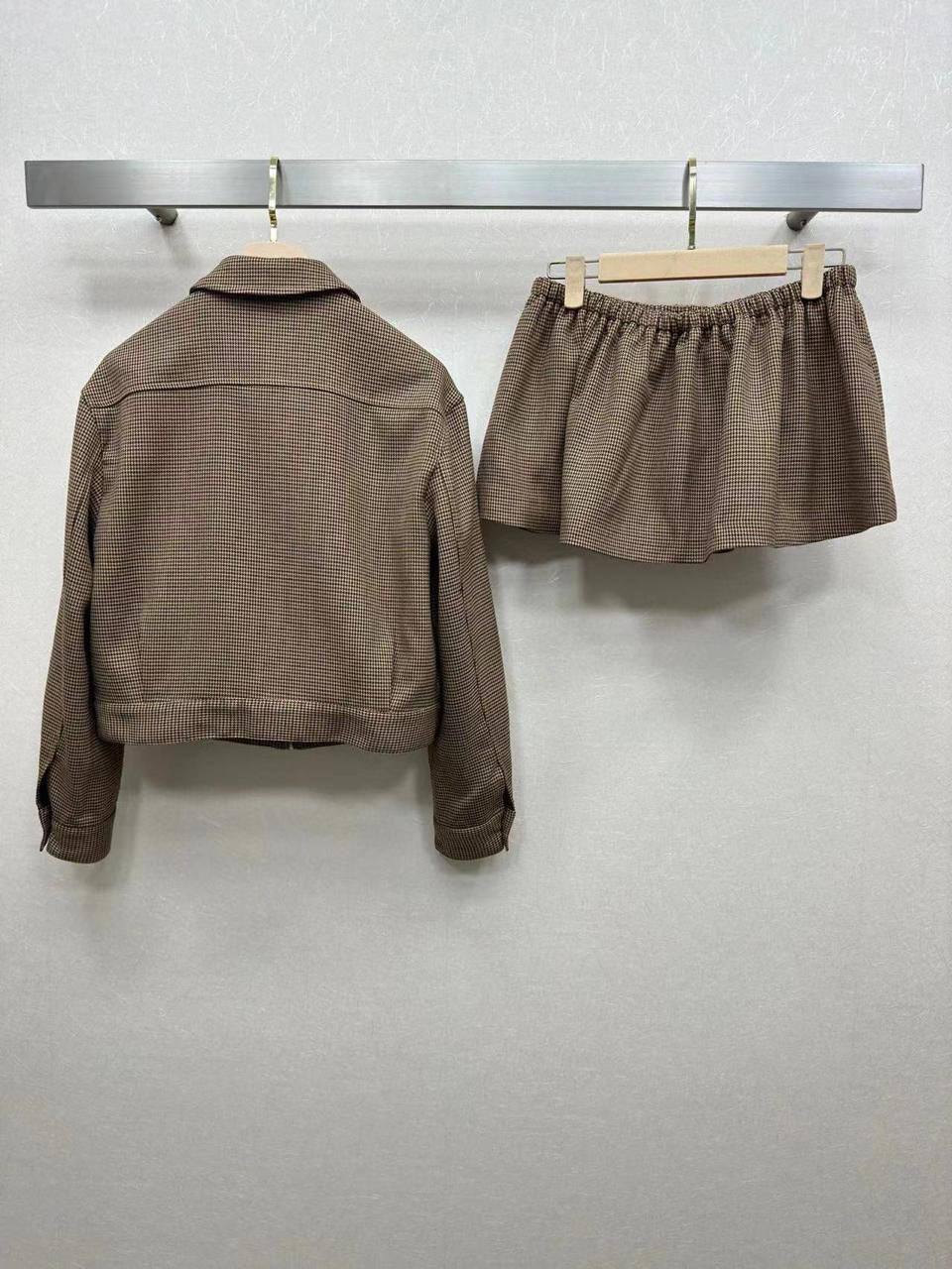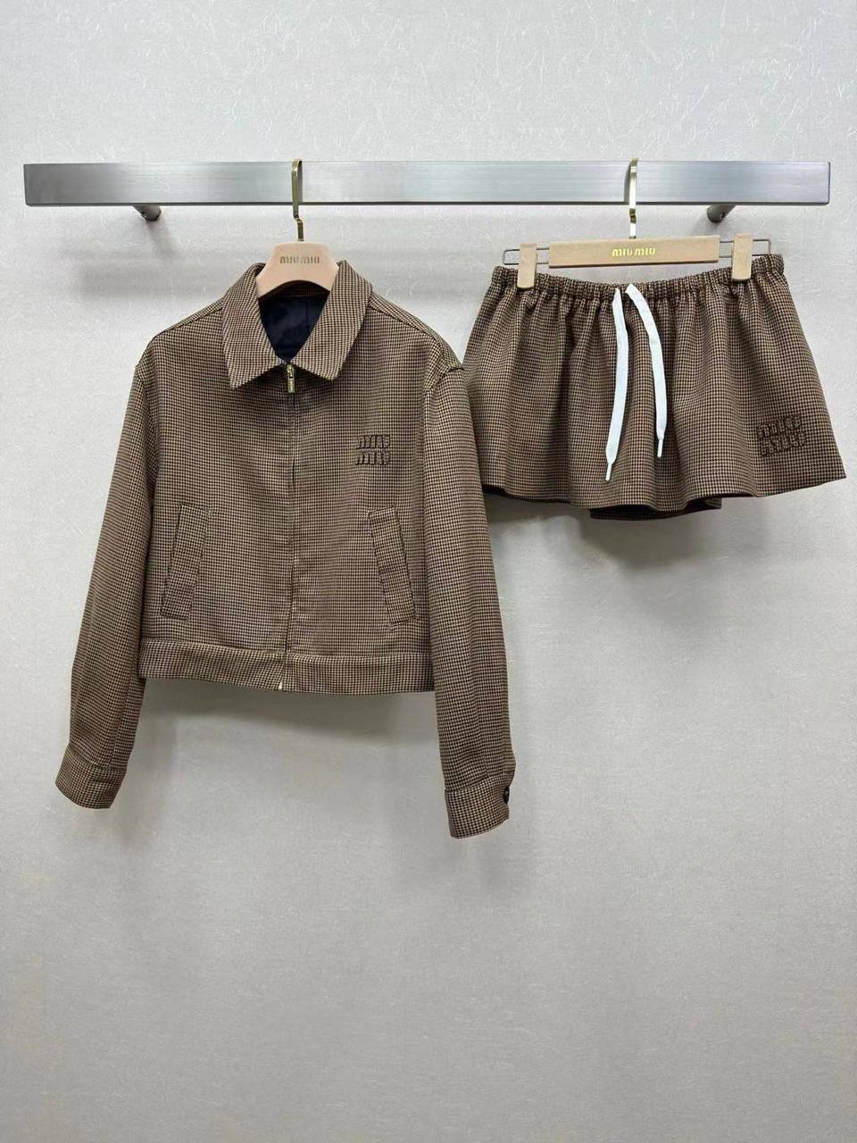 Костюм женский Miu Miu LUX-110878 представляет собой элегантный ансамбль, состоящий из куртки и юбки-шорт. Стиль костюма — классический с современными деталями. Комплект выполнен в коричневом цвете с принтом в мелкую клетку. Такой костюм станет отличным выбором для создания стильного образа.
