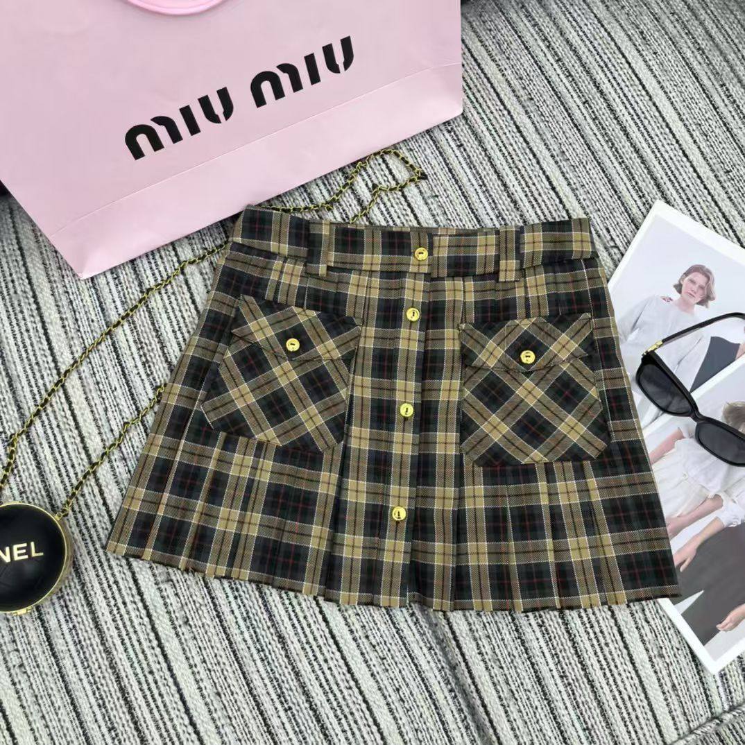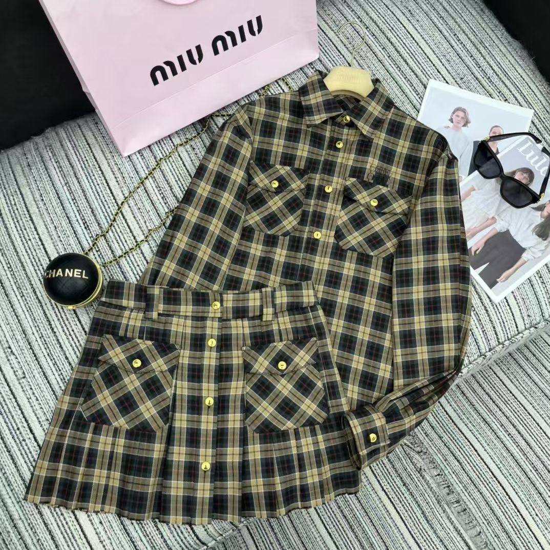 Костюм женский Miu Miu LUX-112751 - это стильный ансамбль, который сочетает в себе элегантность и современный дизайн. Костюм выполнен в коричневой цветовой гамме с классическим клетчатым узором, что придает ему изысканный вид. Данный костюм можно использовать как для повседневной носки, так и для создания деловых образов.