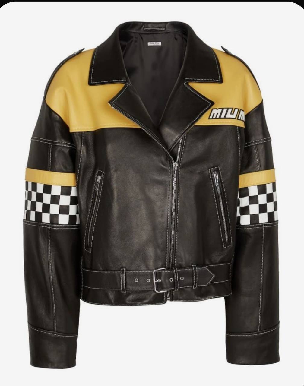 Кожаная куртка Miu Miu LUX-100841 - это воплощение смелого стиля и утонченности. Черная кожаная куртка с контрастными желтыми вставками и клетчатыми акцентами на рукавах. Эта куртка идеально подходит для создания ярких и запоминающихся образов, подчеркивая индивидуальность и смелость обладателя.