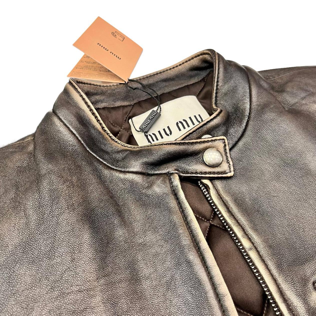 Кожаная куртка Miu Miu LUX-105320 представляет собой воплощение элегантности и стиля. Куртка выполнена в байкерском стиле, имеет слегка состаренный вид, что придает ей уникальный характер. Идеально подойдет для создания эффектных образов в повседневной жизни.