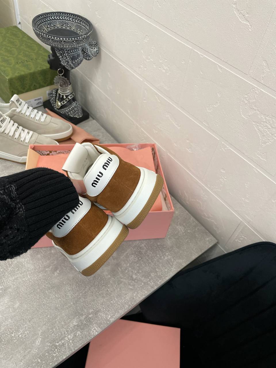 Кроссовки Miu Miu LUX-102551 — это элегантные повседневные кроссовки. Выполнены в коричневом цвете с белой подошвой и шнурками, что придает им стильный и современный вид. Эти кроссовки идеально подойдут для создания модных образов на каждый день.