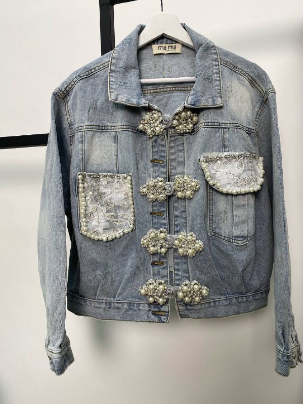 Куртка Miu Miu LUX-50006 – это стильная и уникальная джинсовая куртка, которая сочетает в себе классический крой с роскошными декоративными элементами. Модель выполнена в голубом джинсовом цвете и украшена изысканными жемчужными аппликациями и кружевными вставками, что придает ей элегантный и изысканный вид. Она прекрасно подойдет для создания как повседневных, так и более нарядных образов.