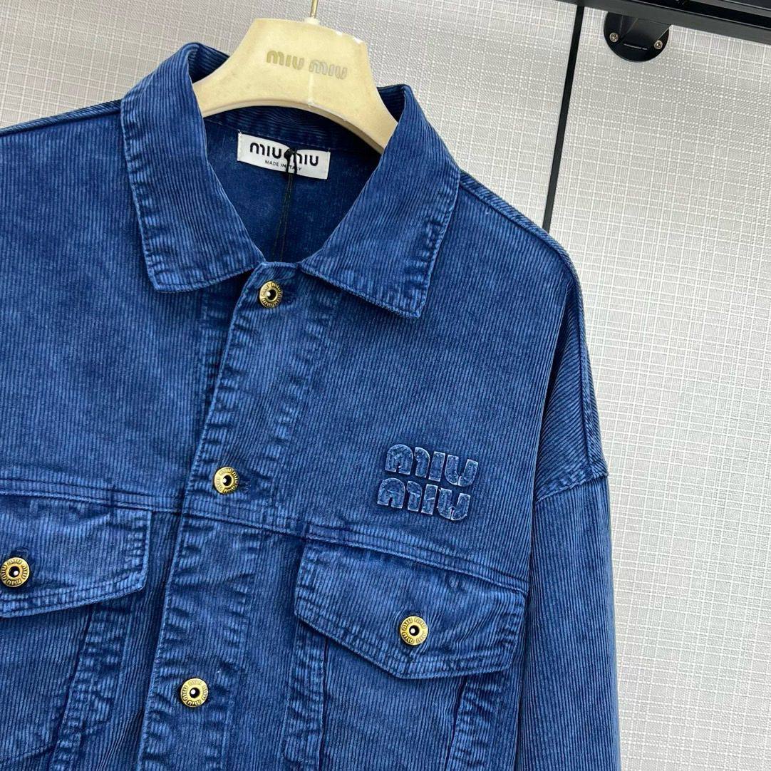 Куртка Miu Miu LUX-114343 – это стильная вещь, выполненная в повседневном стиле. Она выполнена в насыщенном синем цвете, что придает ей универсальность и позволяет сочетать с разными образами. Куртка имеет характерную текстуру вельвета и короткий крой.