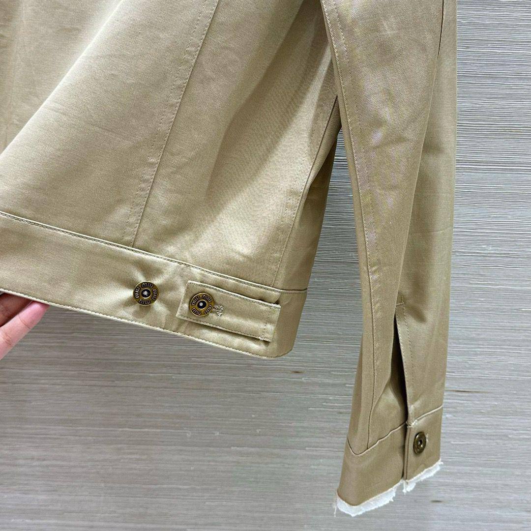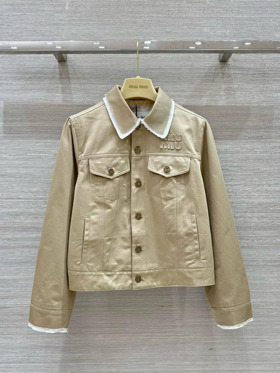 Куртка женская Miu Miu LUX-115020 представляет собой стильную и элегантную модель, которая идеально подойдет для создания повседневных образов. Куртка выполнена в приятном бежевом цвете с контрастными белыми вставками на воротнике и манжетах. Дизайн куртки сочетает в себе классические элементы и современные тенденции.
