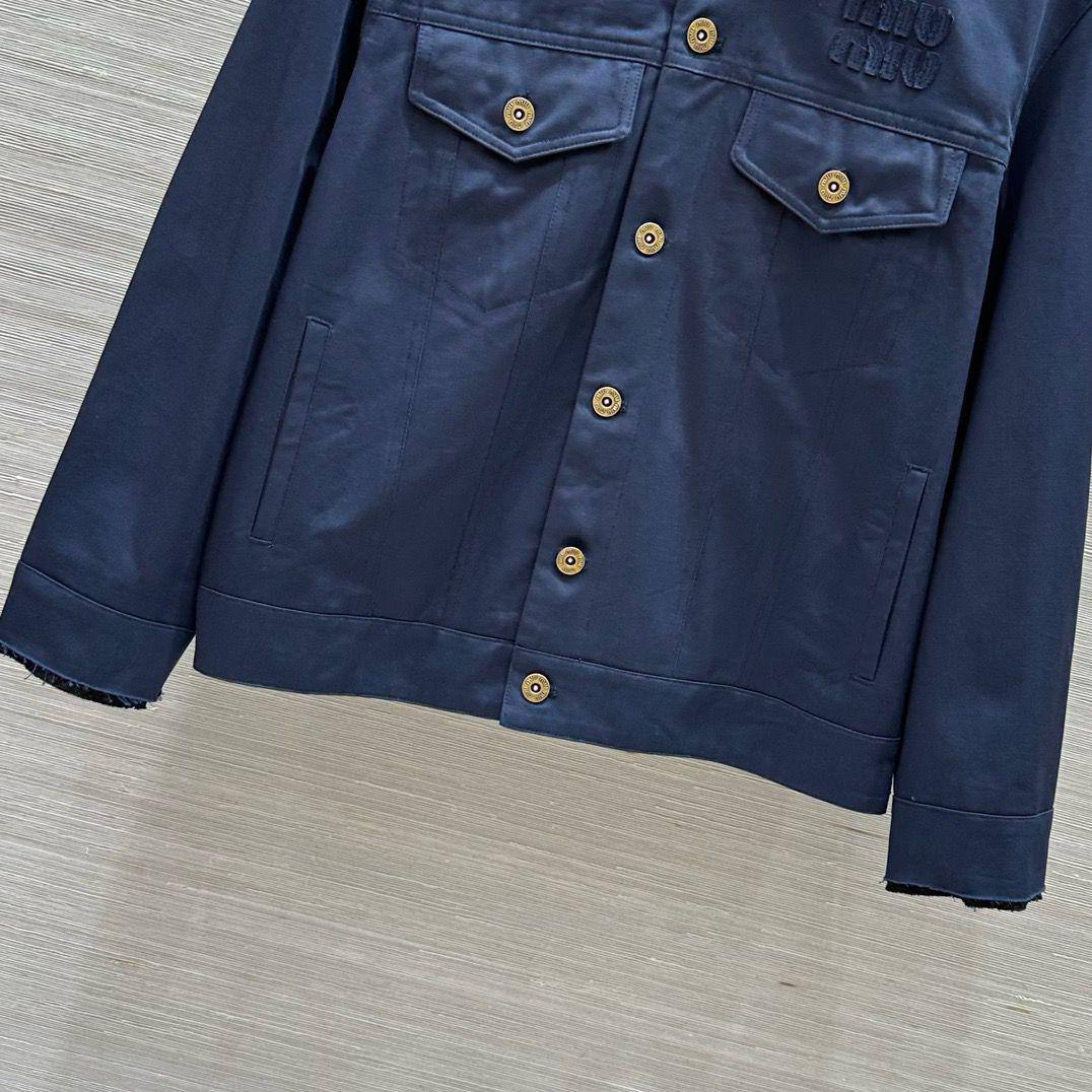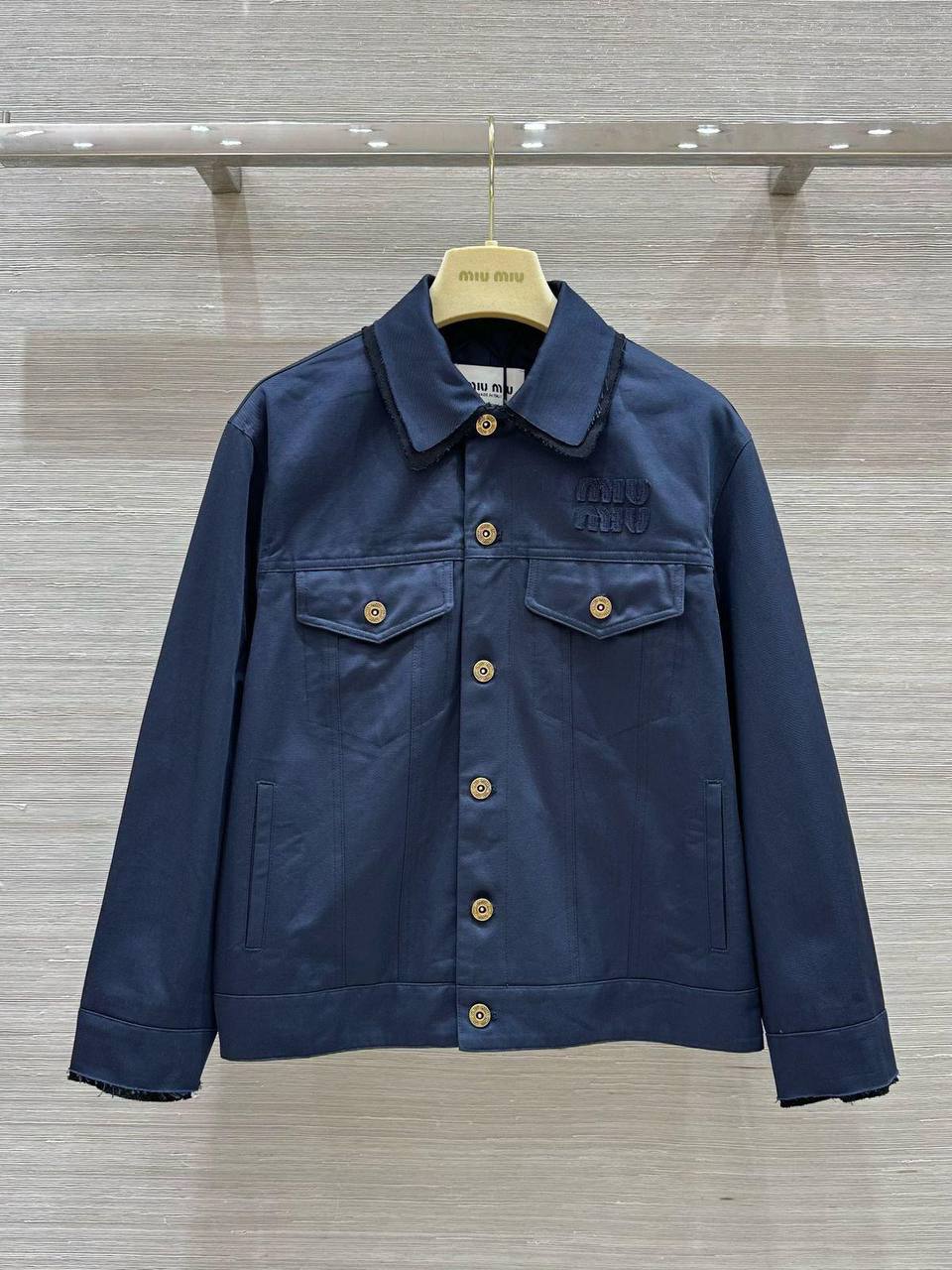 Женская куртка Miu Miu LUX-115021 – это воплощение элегантности и стиля. Куртка выполнена в темно-синем цвете, имеет классический крой с воротником и двумя нагрудными карманами. Логотип бренда Miu Miu вышит на груди, придавая изделию узнаваемость.