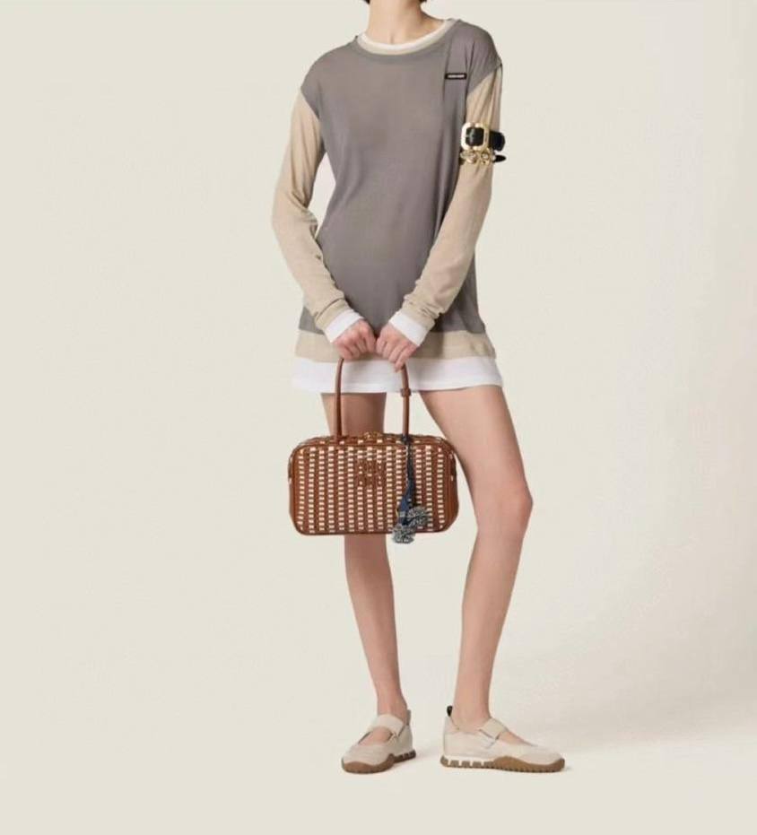 Лонгслив Miu Miu LUX-119466 - это стильный предмет гардероба в спортивном стиле, представленный в серо-бежевых тонах. Контрастные рукава и воротник, в сочетании с минималистичным дизайном делают его идеальным для создания повседневных образов.