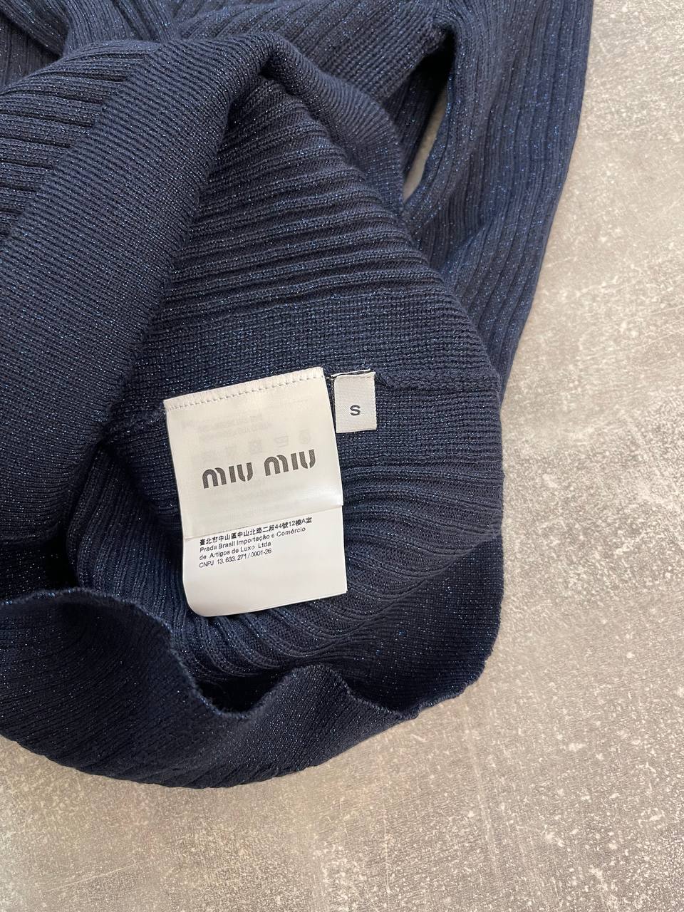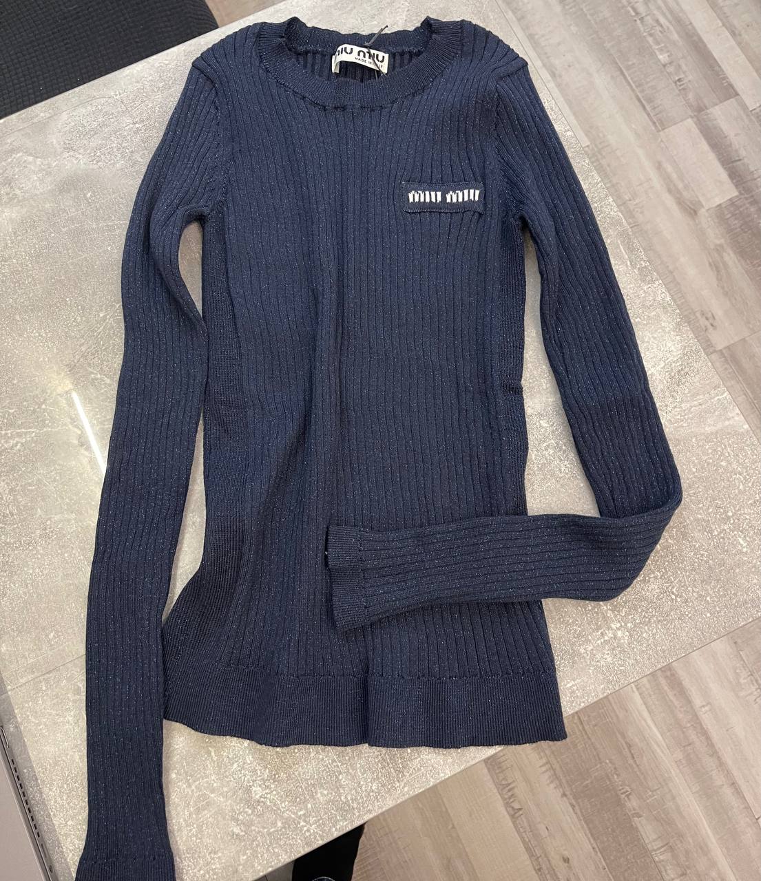 Лонгслив Miu Miu LUX-98368 — это элегантный предмет гардероба. Данная модель выполнена в темно-синем цвете с рельефной текстурой в рубчик. Лонгслив подойдет для создания стильных повседневных образов.