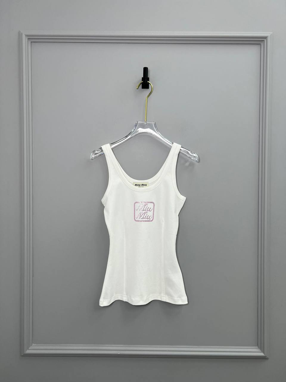 Майка Miu Miu LUX-105297 — это воплощение изысканности и стиля. Белая майка с утонченным дизайном и фирменным логотипом бренда, выполненным в нежных оттенках. Отлично подойдет для создания повседневных и элегантных образов.