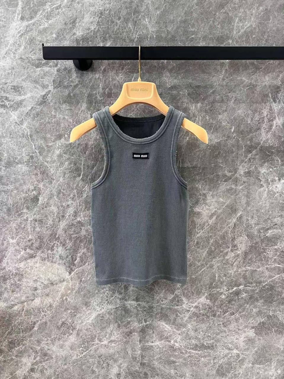 Майка Miu Miu LUX-115471 — это стильный элемент гардероба, представленный в современном дизайне. Изделие выполнено в сером цвете с ребристой текстурой, что придает ему выразительность. Майка подходит для создания как повседневных, так и более изысканных образов.