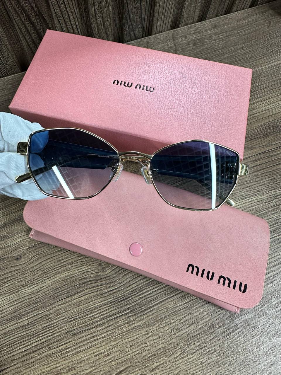 Очки Miu Miu LUX-119096, представленные на изображении, выполнены в стильном дизайне и подойдут для создания яркого образа. Цвет оправы — золотой, а линзы имеют градиентный оттенок. Очки предназначены для защиты глаз от солнца и являются стильным аксессуаром.