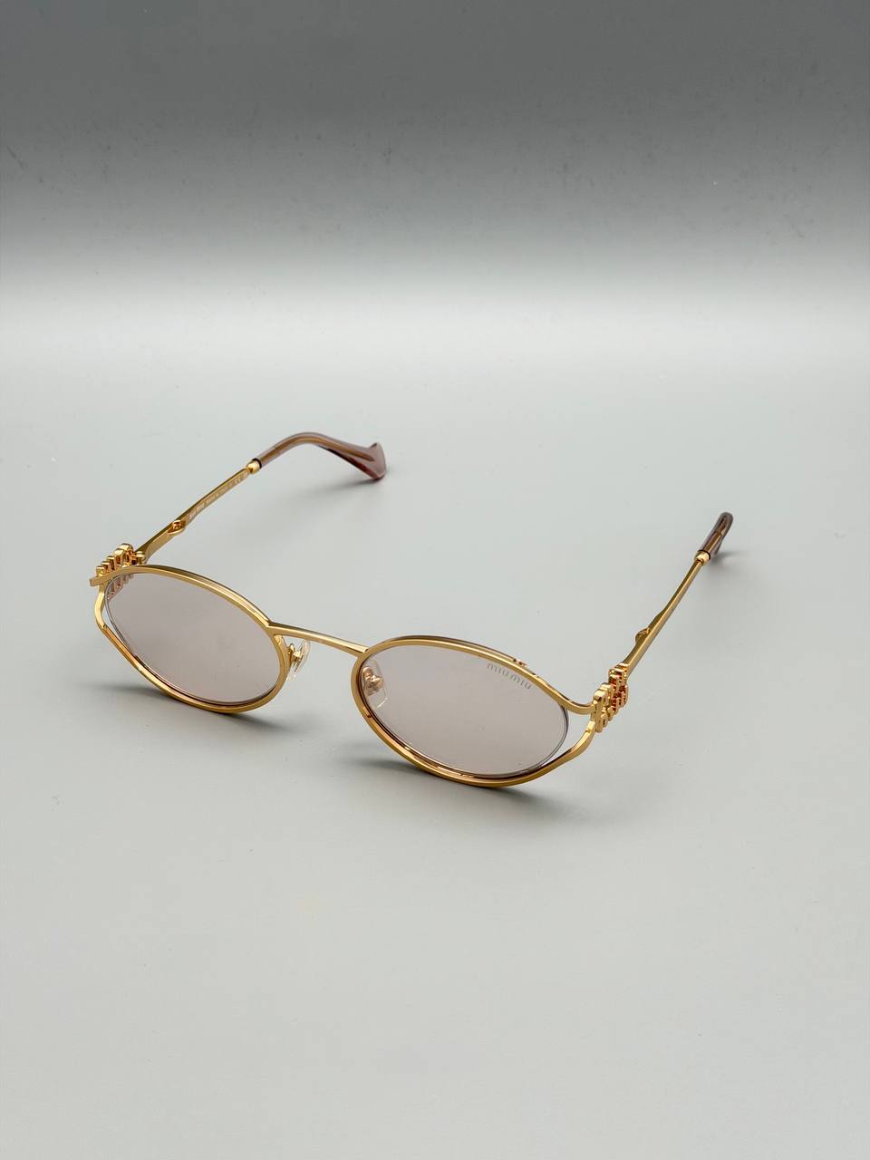 Очки Miu Miu – это воплощение утонченности и современного дизайна. Золотистая оправа и овальная форма линз придают образу изысканность и элегантность. Аккуратные детали и качественное исполнение делают эти очки прекрасным аксессуаром.