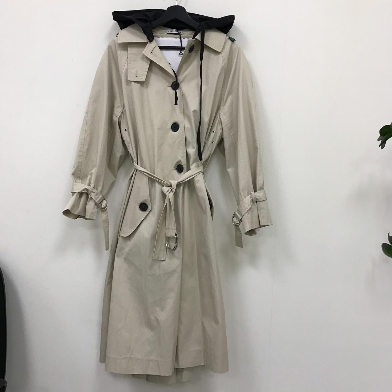 Элегантный бежевый плащ Miu Miu LUX-11363 с черным капюшоном — идеальное дополнение к вашему гардеробу, сочетающее классический стиль и современные детали. Этот плащ прекрасно подойдет для межсезонья, обеспечивая комфорт и защиту от непогоды.